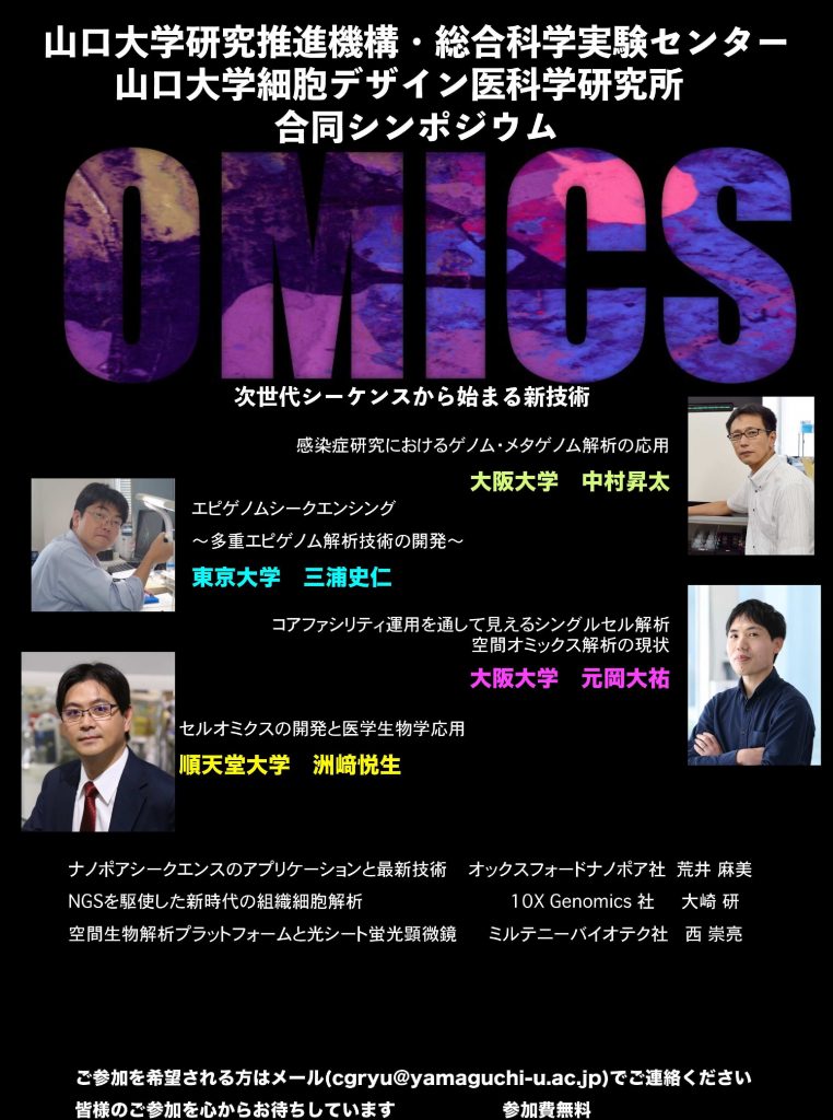 *ご案内* 11/1(金)山口大学研究推進機構・総合科学実験センター×山口大学細胞デザイン医科学研究所 合同シンポジウム「次世代シーケンスから始まる新技術」を開催します