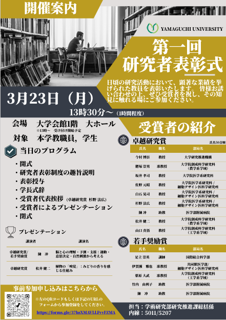 *お知らせ*第1回 研究者表彰式を開催します