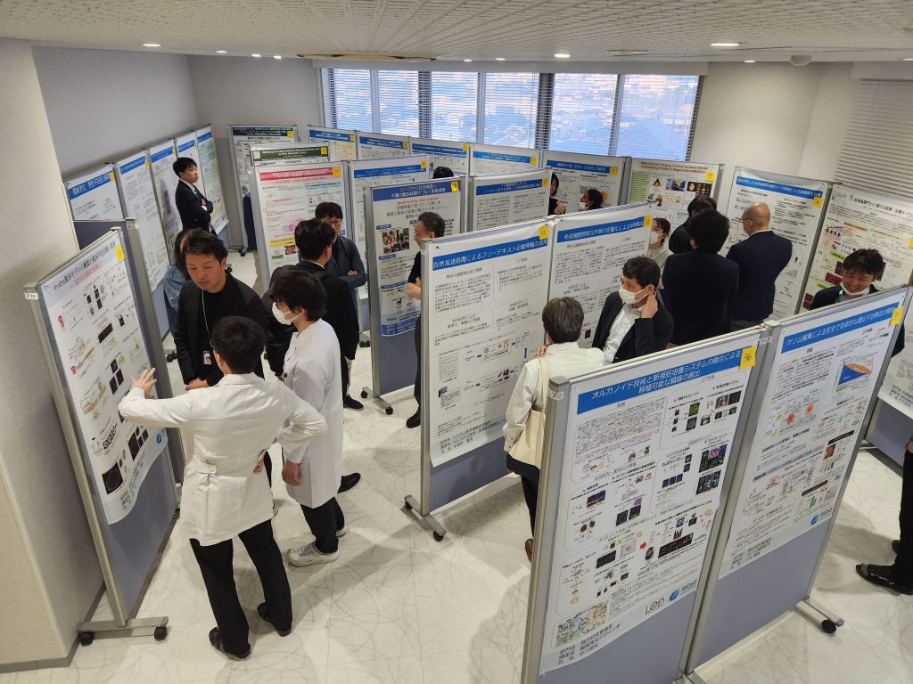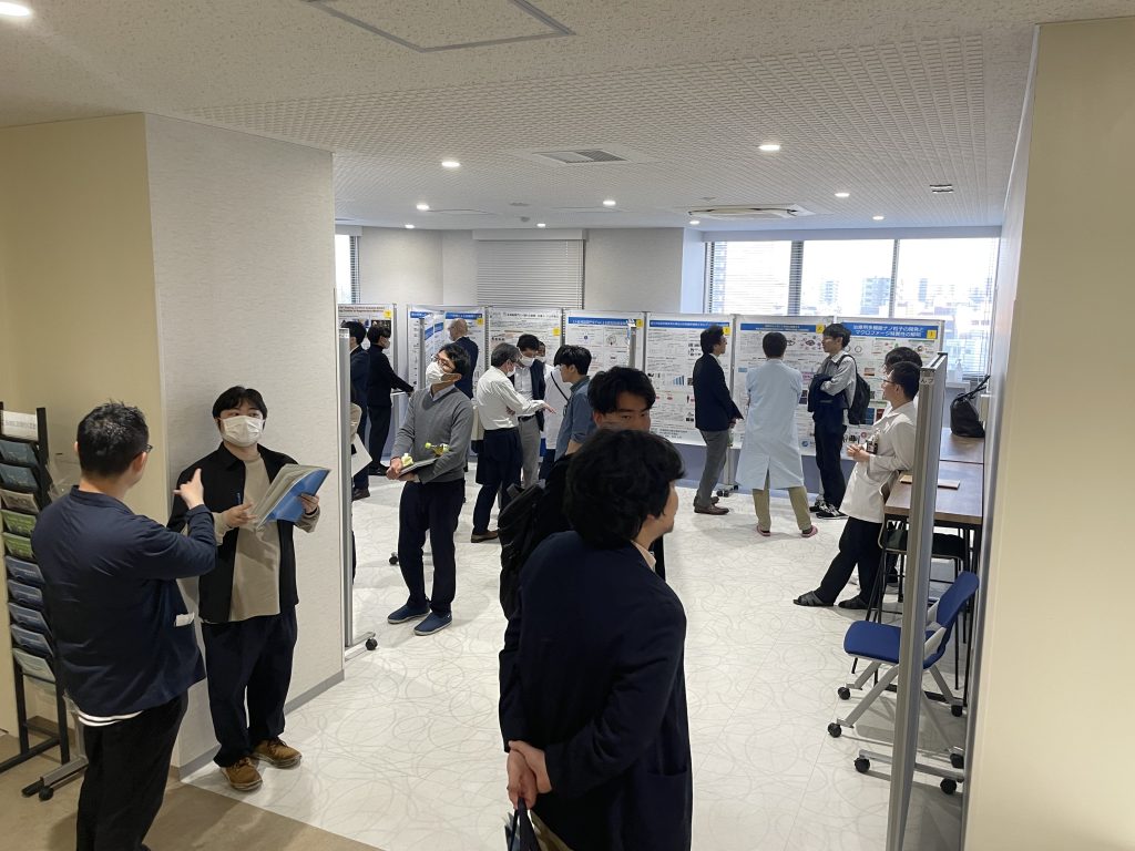 その後のポスターセッションでは意見交換の場が設けられ、所員同士が交流を深めました。自由な雰囲気の中、普段顔を合わせない所員同士の出逢いもあり、新たな研究の芽に期待が寄せられます。