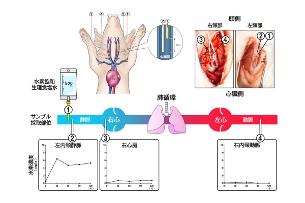 山口大学大学院医学系研究科と共同獣医学部の研究グループは、ブタを用いた実験で、水素点滴における水素の体内での動きを世界で初めて明らかにしました。