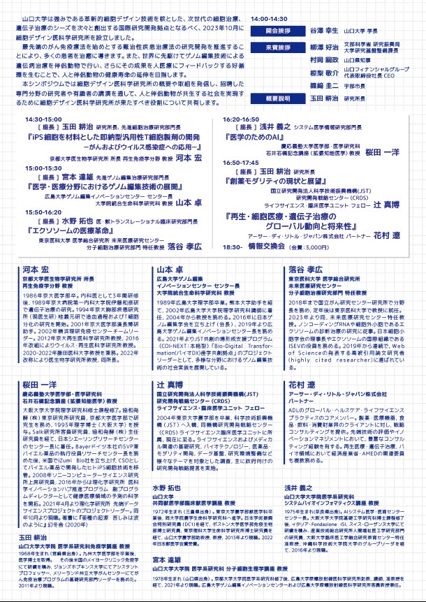 RICeD was established in October 2023 as Yamaguchi University’s first research institute in 23 years, aiming to become an international research and development center to create seeds of next-generation cell therapy and gene therapy based on innovative cell design technology, which is one of Yamaguchi University’s strengths. This symposium was held as a kick-off event to commemorate the establishment.