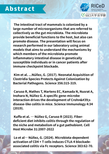 Microbiota-Immune Interactions in Health and Disease” will be held on Monday, July 7, 2025 at the 2nd Lecture Room on the 2nd floor of the IShukan, Kogushi Campus.