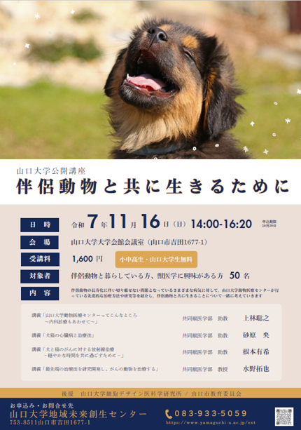 *Announcement* Yamaguchi University Public Lecture Series: “Living with Companion Animals” to be held on Sunday, November 16