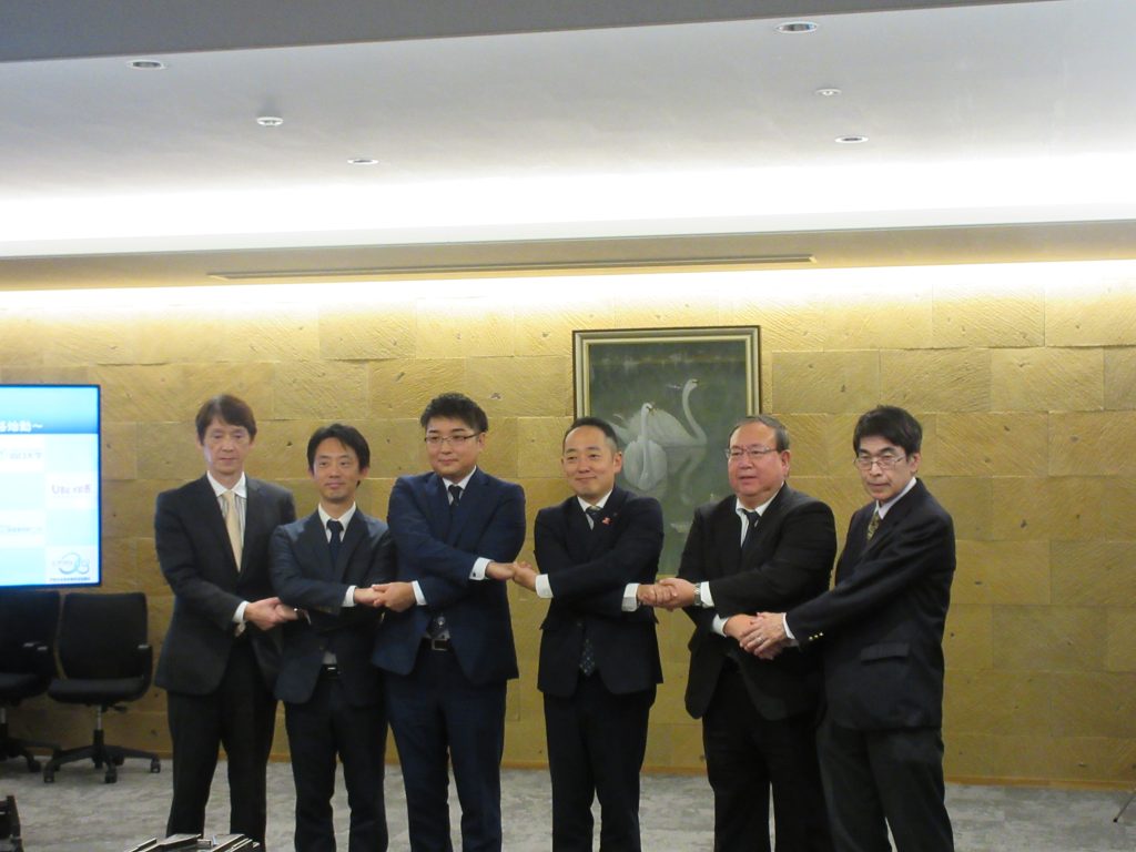 Professor Yukio Takeshita and colleagues from the Graduate School of Medicine and The Research Institute for Cell Design and Medical Science at Yamaguchi University developed the cuBe kit, the world’s first high-performance human brain vascular model kit featuring a three-layer structure, as a result of years of original research. Based on these research achievements, Professor Takeo Takeshita (Department of Neurotherapeutics) and Assistant Professor Naoomi Tominaga (Clinical Laboratory Sciences) established ADDVEMO Inc. as a Yamaguchi University spin-off startup in October last year to accelerate brain drug development. With funding from Ube City, they held a joint press conference at Ube City Hall with relevant parties in attendance to announce the full-scale launch of a project aiming to establish Ube City as a hub for brain drug development and manufacturing.