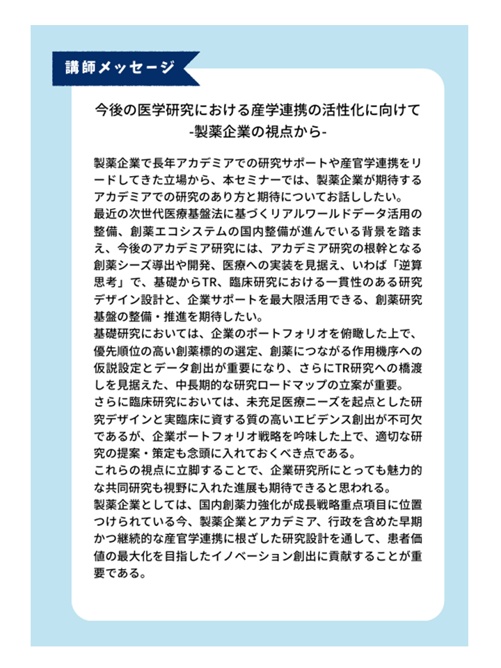 We are pleased to announce an upcoming seminar featuring Mr. Masahisa Jinushi from Gilead Sciences, Inc. We look forward to your participation.