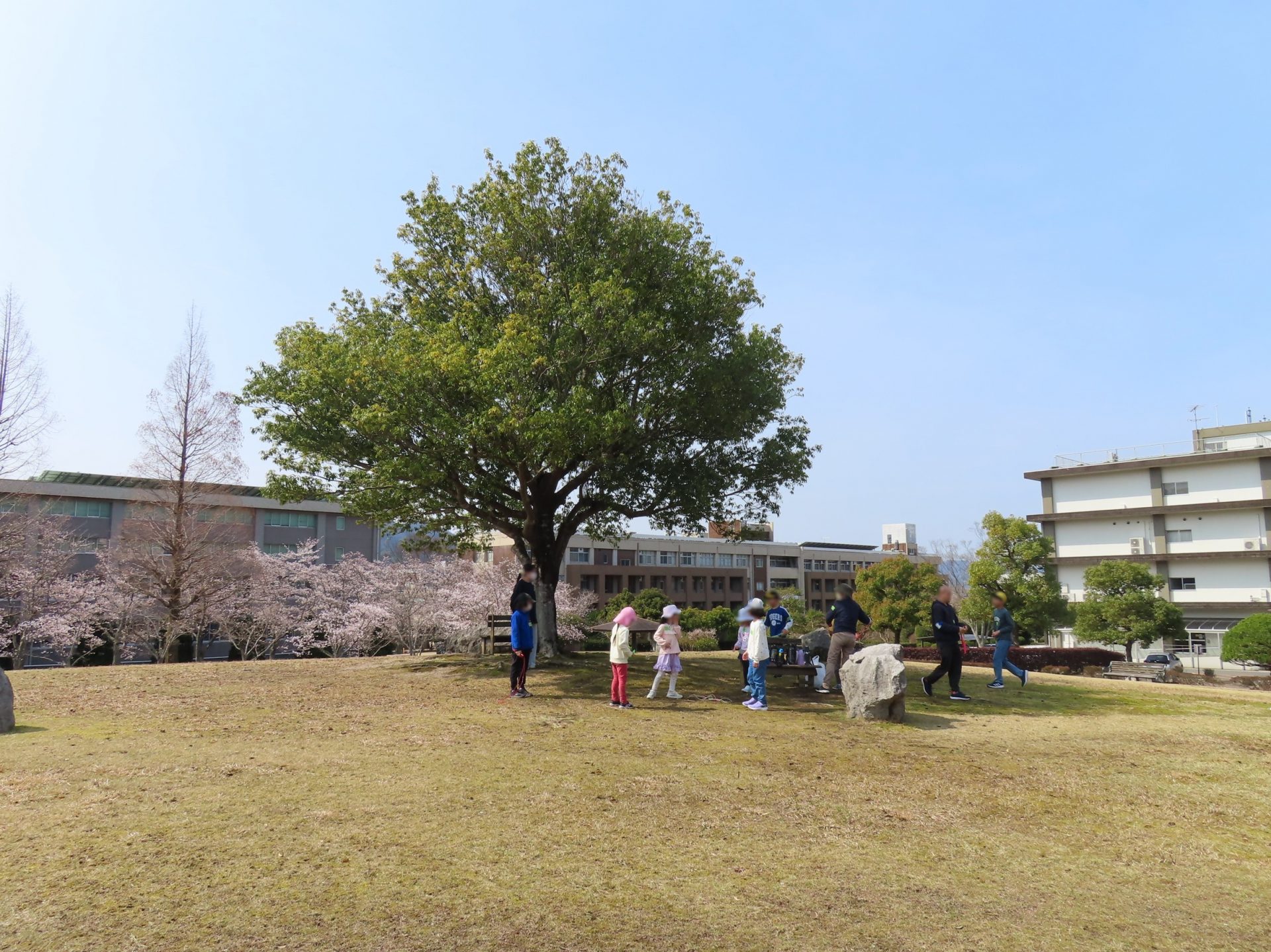 3月27日(金)~4月9日(木)の10日間、吉田キャンパスで春季学童保育「ヤマミィ学級」を実施し、新1年生も含めて22名の小学生が利用しました。 今回は、「春のお散歩しませんか? ~山口大学春見つけ遊び~」などのプログラムがおこなわれ、桜が咲き誇るキャンパス内で楽しい時間を過ごすことができました。