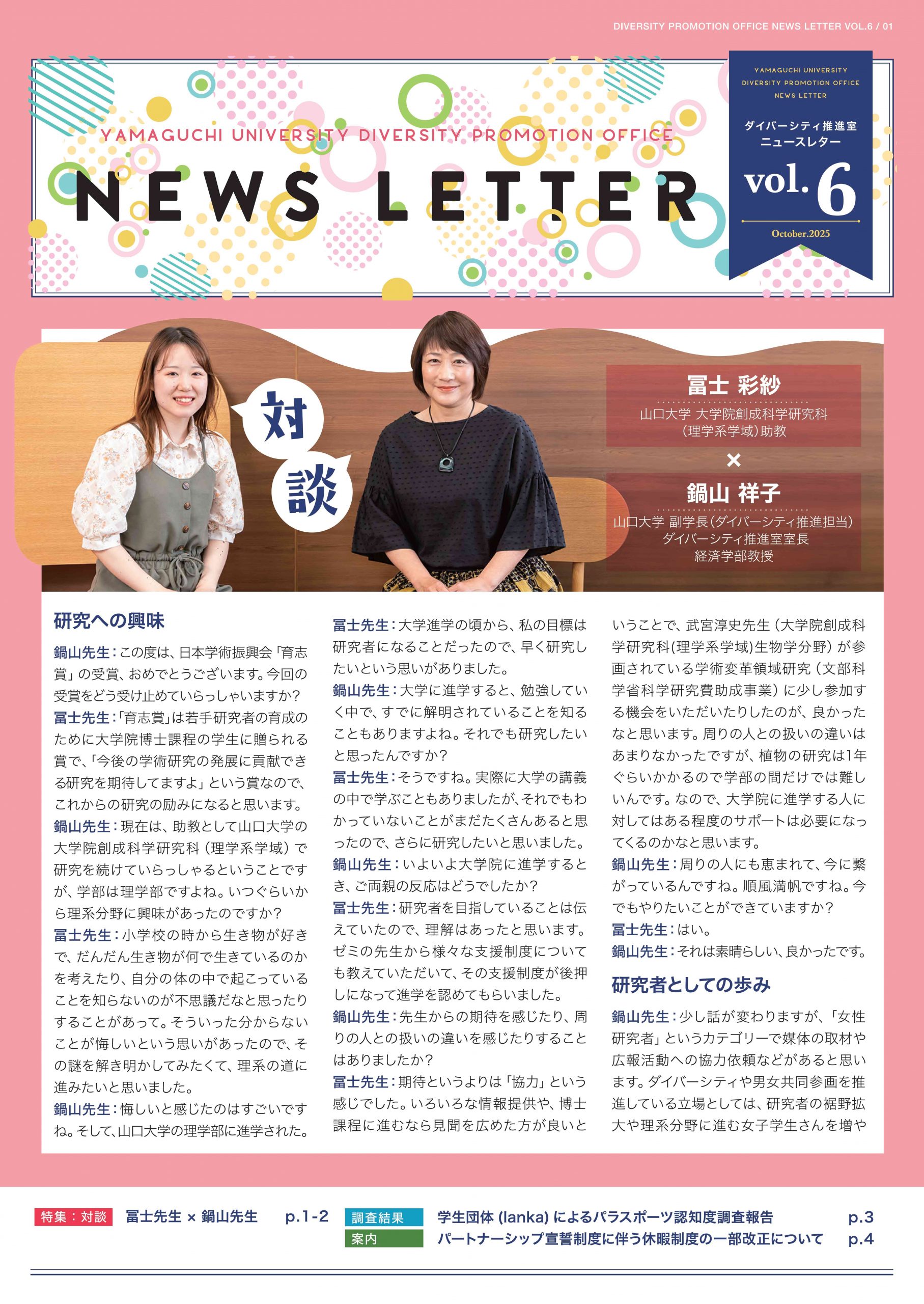山口大学ダイバーシティ推進室では、やまぐちダイバーシティ推進加速コンソーシアムや山口大学での取り組みをニューズレターに掲載し、発行しています。