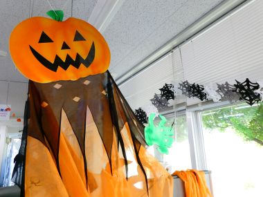 このイベントは、学部公認サークルが、留学生との交流を深めようと毎年企画・運営しているものです。イベントだけではなく、この日は事務室もハロウィン仕様に飾りつけを行い、学部棟でもハロウィンの雰囲気を楽しむ工夫を凝らしました。