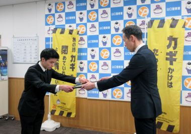 研究成果は、大学における教育・研究活動が地域社会の実践的課題解決へと直接的に波及した好例として評価され、制作されたのぼり旗は山口県警察へ贈呈され、今後の防犯啓発活動に活用される予定です。
