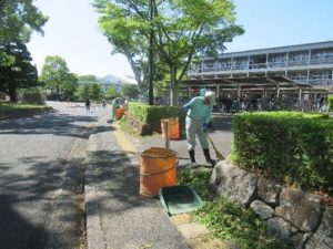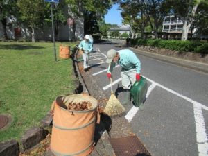 キャンパスロードの縁石清掃を実施しました