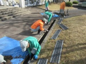 各学部等周辺や正門大駐車場の溝掃除を実施しました