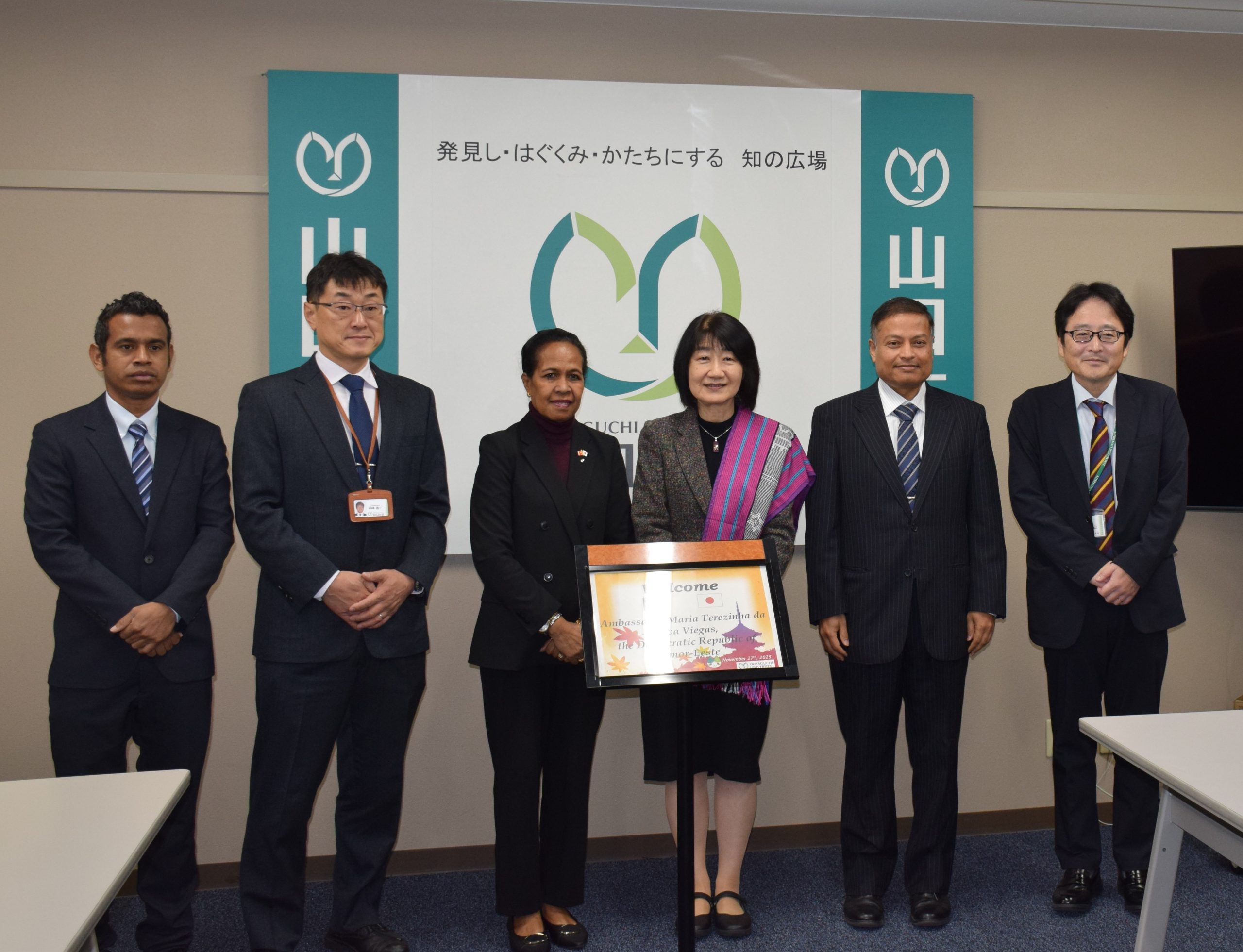 2025 年 11 月 27 日(木)、駐日東ティモール民主共和国大使館から、Maria Terezinha da Silva VIEGAS 駐日東ティモール大使及び Joao Mendonca 労働担当官が来学され、石井由理副学長(国際連携担当)への表敬訪問及び工学部での視察等を行いました。