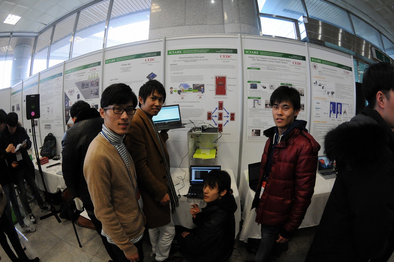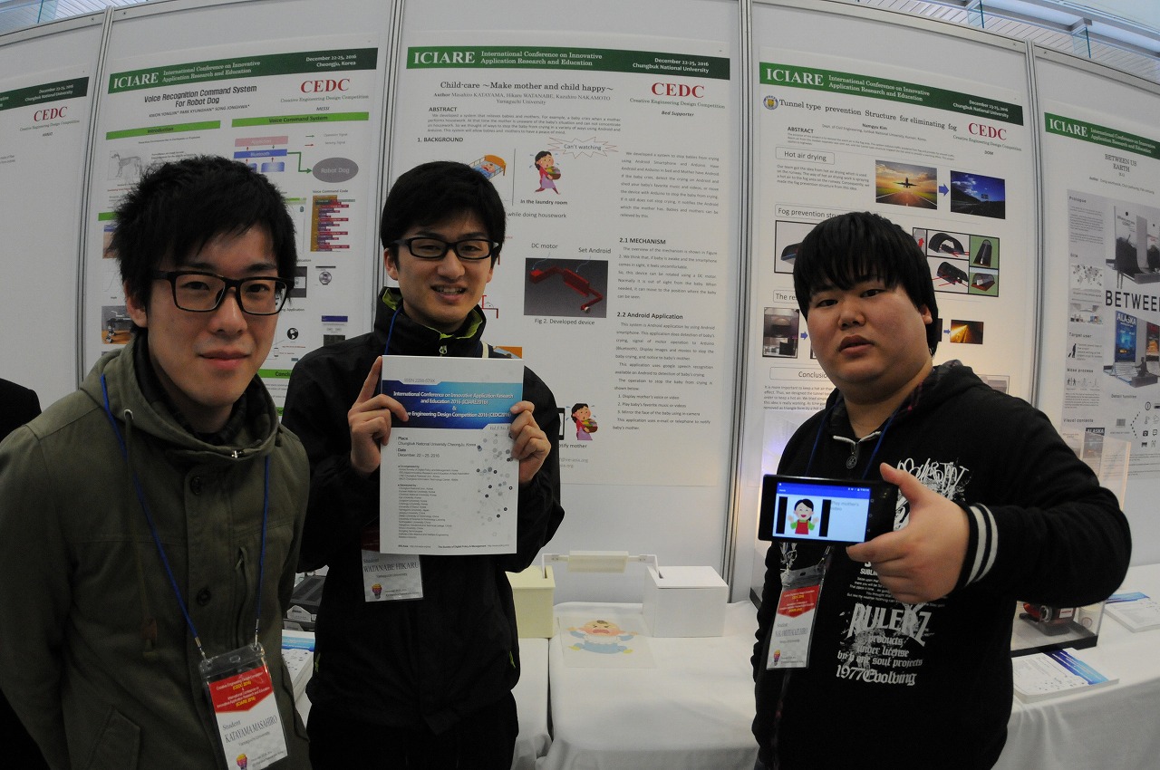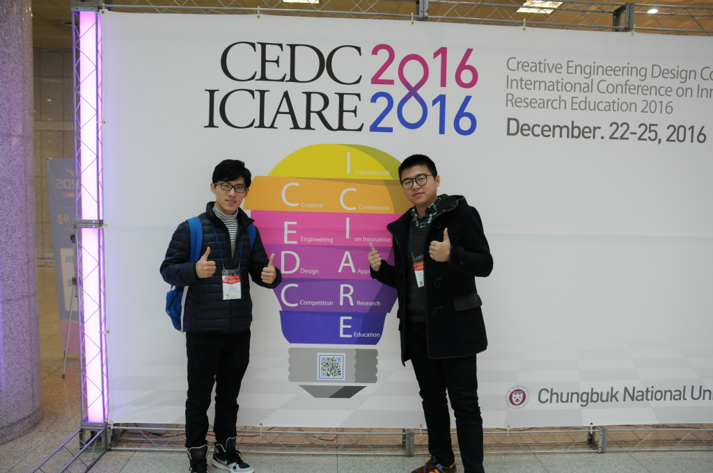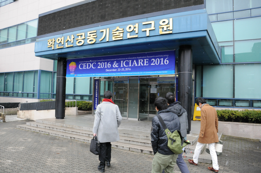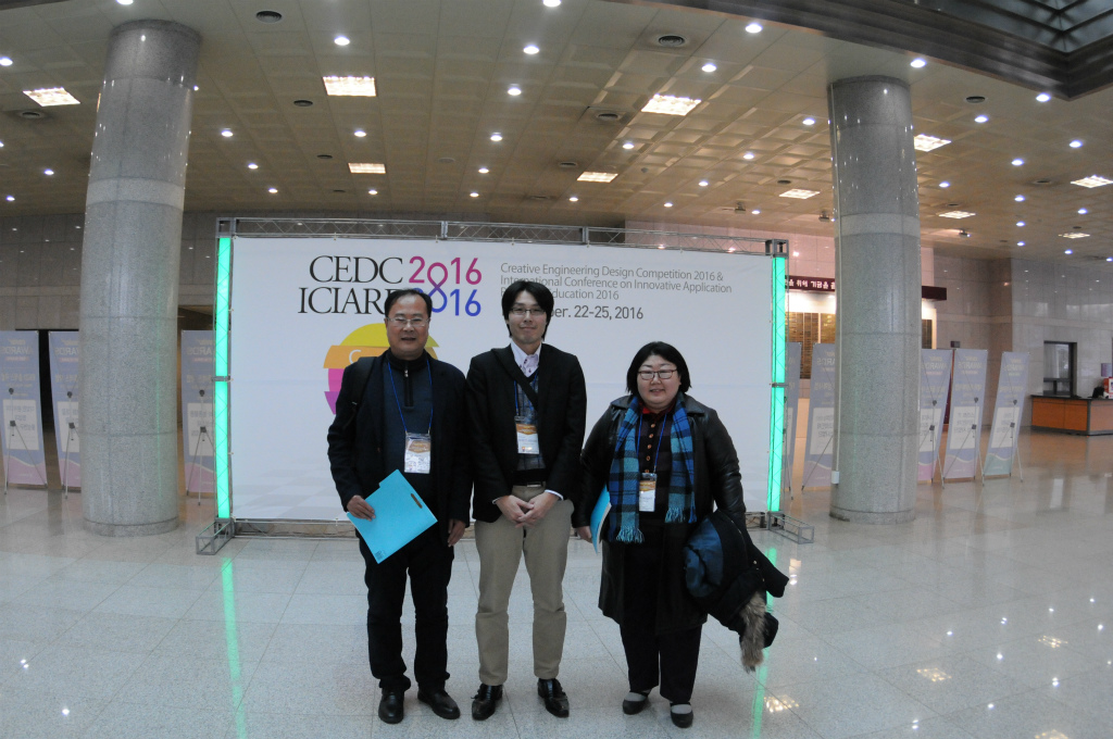 2016年12月22日~25日に韓国の忠北大学で開催された国際会議International Conference on Innovative Application Research and Educationと,国際的なメカトロニクス創造作品の学生コンペであるCreative Engineering Design Competitionに研究室の教員と博士後期課程学生2名および修士1年生が参加しました.これらの取組は山口大学の共催で行われました.