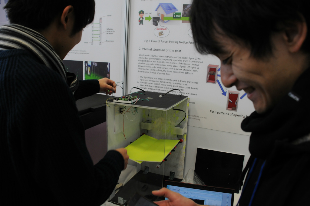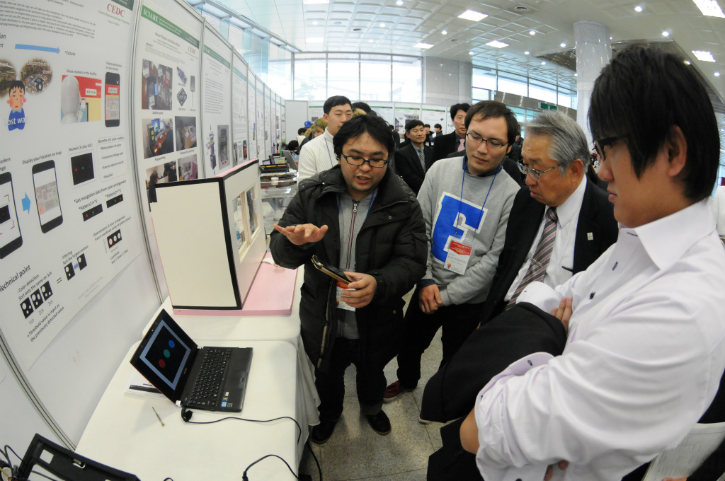 国際会議では小柴准教授と博士後期課程の楊くん,羅くんの3名が論文賞を受賞しました.また,CEDCでは研究室M1の石田君のチームが金賞,三本松君のチームが銀賞,宮本君と渡辺君のチームが銅賞を受賞しました.CEDCでは機械,電気,知能情報の卒業生からなる学生チームが展示した製作物が評価されました.