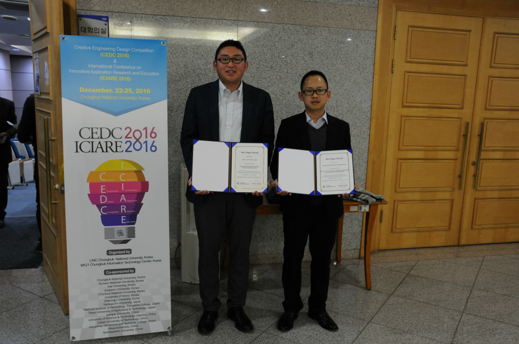 国際会議ICIARE&CEDC2016 in 忠北大学(韓国)に参加し研究室の教員および学生が論文賞を受賞しました!