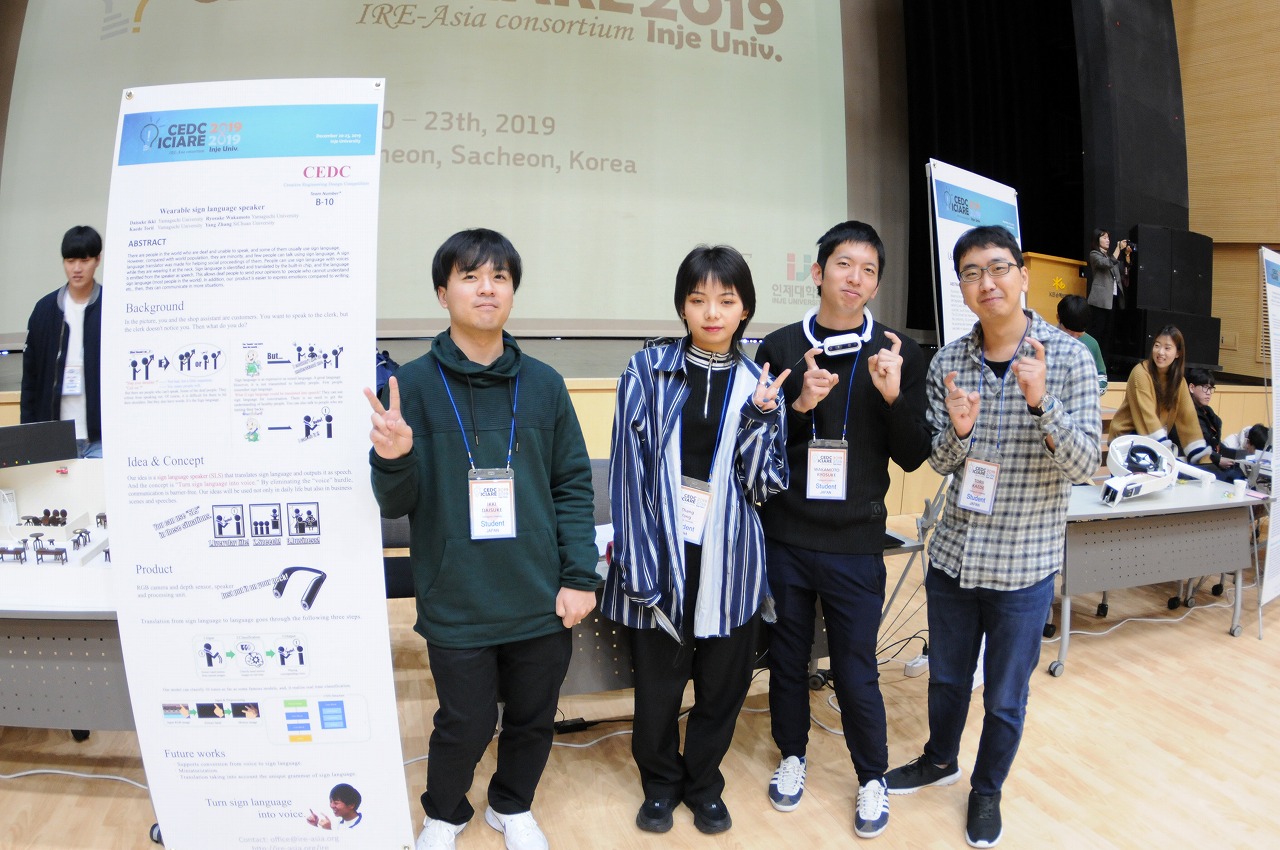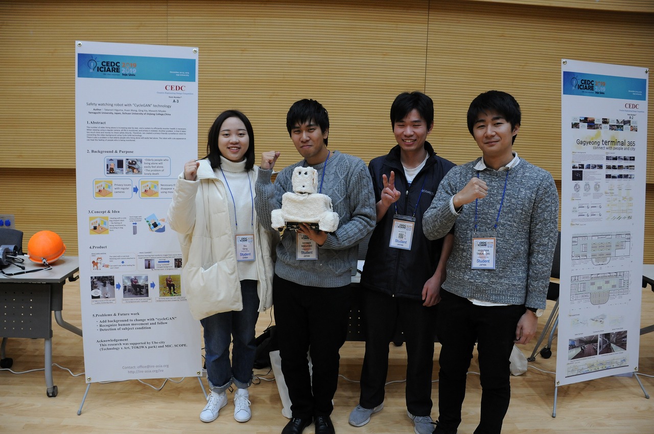 2019年12月20日~23日に行われたICIARE(International Conference on Innovative Application Research and Education)と CEDC (Creative Engineering Design Competition)に研究室の学生も含めた22名が参加し,講義や研究で製作した社会問題を解決するための作品についてデモンストレーションと成果発表を行い、中国や韓国の学生と競い合いました.