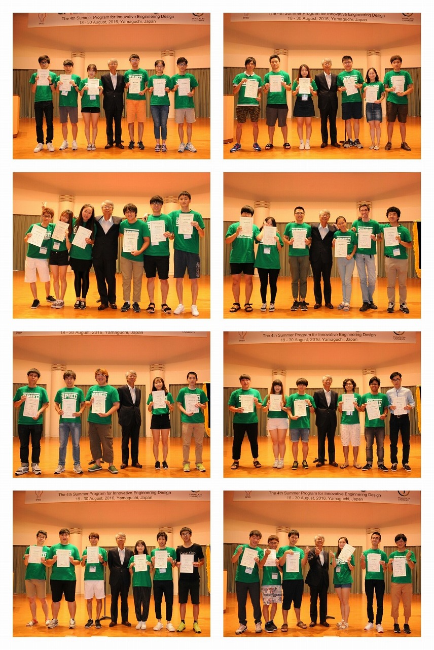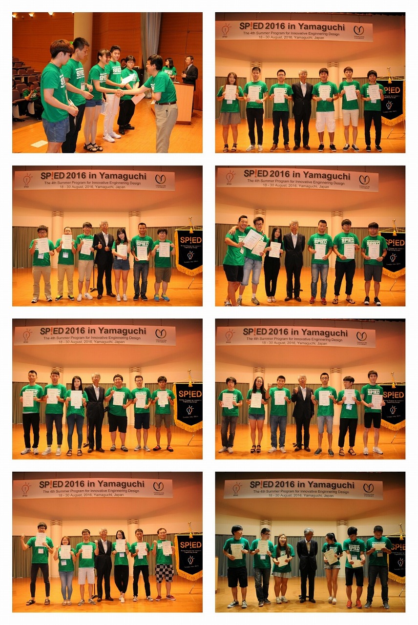 創造設計工学に関する夏期講習を国際的に実施するSPIED2016 in 山口大学が2016年8月18日-30日の日程で日中韓台湾の10を超える大学の学生100名および教員22名が参加し,盛大に開催されました.
