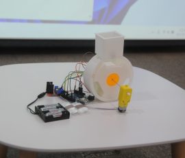 特筆すべきは、修士1年の川田君が所属するグループが、14チーム中たった1チームに贈られる「Grand Award」を受賞したことです。彼らのプロジェクトは、審査員たちから高い評価を受け、革新性、実用性、プレゼンテーションの優れた融合が認められました。川田君のグループが取り組んだプロジェクトは、「Automatic Garbage Classification Device Based on Machine Vision」で、AIを用いたゴミの種類の判別と機構による分別をテーマとしたデバイスの提案で、実装された試作品の技術が最も評価されていました。