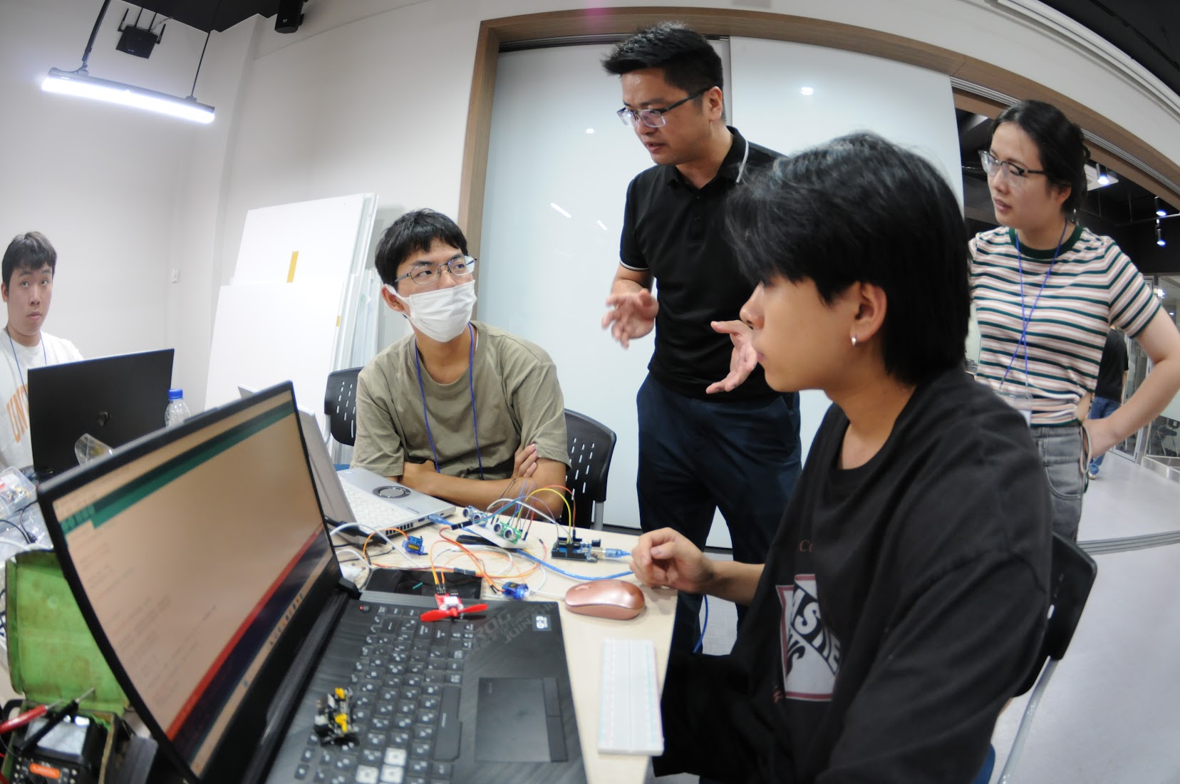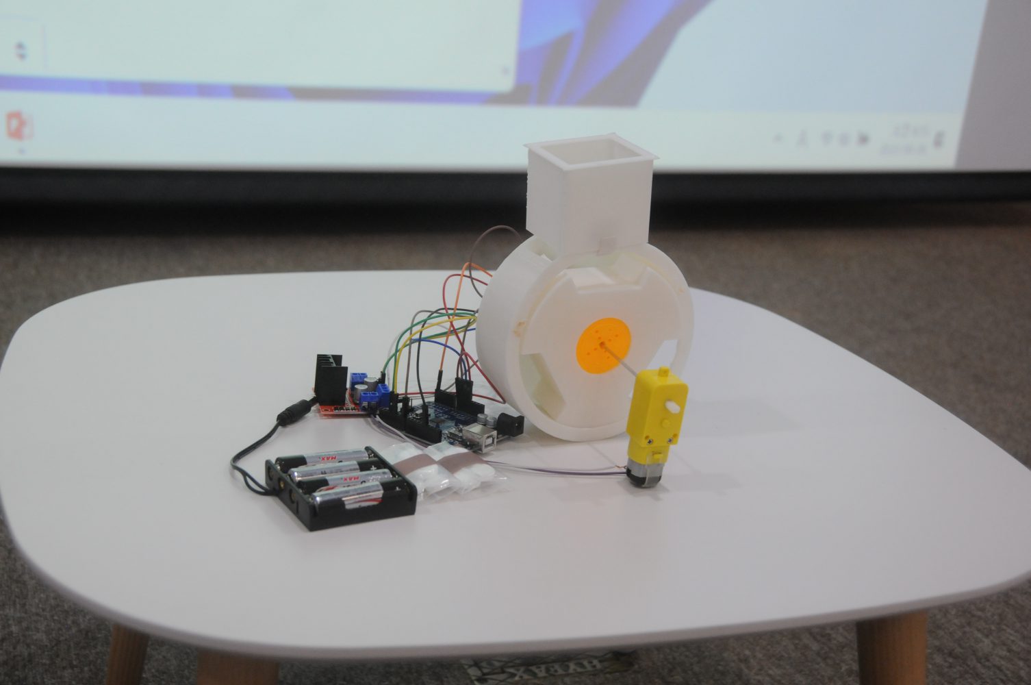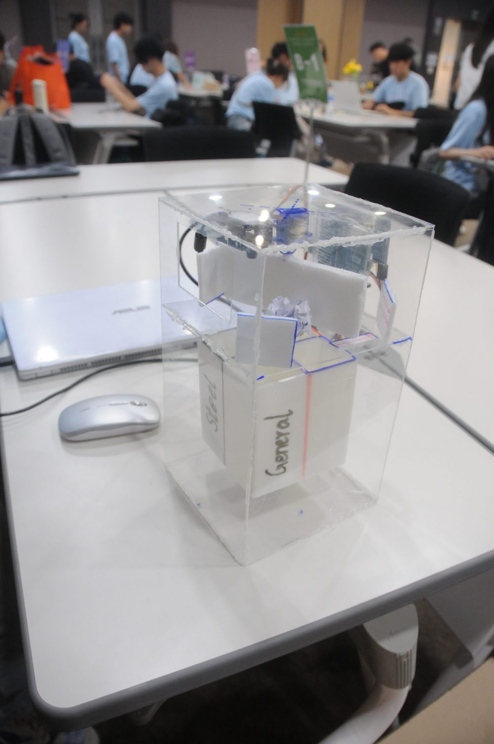 特筆すべきは、修士1年の川田君が所属するグループが、14チーム中たった1チームに贈られる「Grand Award」を受賞したことです。彼らのプロジェクトは、審査員たちから高い評価を受け、革新性、実用性、プレゼンテーションの優れた融合が認められました。川田君のグループが取り組んだプロジェクトは、「Automatic Garbage Classification Device Based on Machine Vision」で、AIを用いたゴミの種類の判別と機構による分別をテーマとしたデバイスの提案で、実装された試作品の技術が最も評価されていました。
