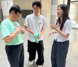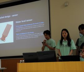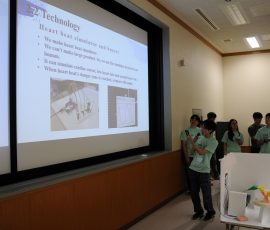 日本、中国、韓国の3か国から、合計10大学の学生111名と教員26名が参加しました。参加者の専攻分野は、機械、電気、情報系が中心ですが、芸術、数学、食品安全、化学、園芸科学、経済など、幅広い分野にわたっています。今年のテーマは「超高齢化社会に向けたスマートな解決策」(Smart Solutions for Super-Aging Society)で、学生たちはテーマに基づいて革新的なアイデアを考え、実際に試作品を制作することで、現実の課題に対する解決方法を模索しました。