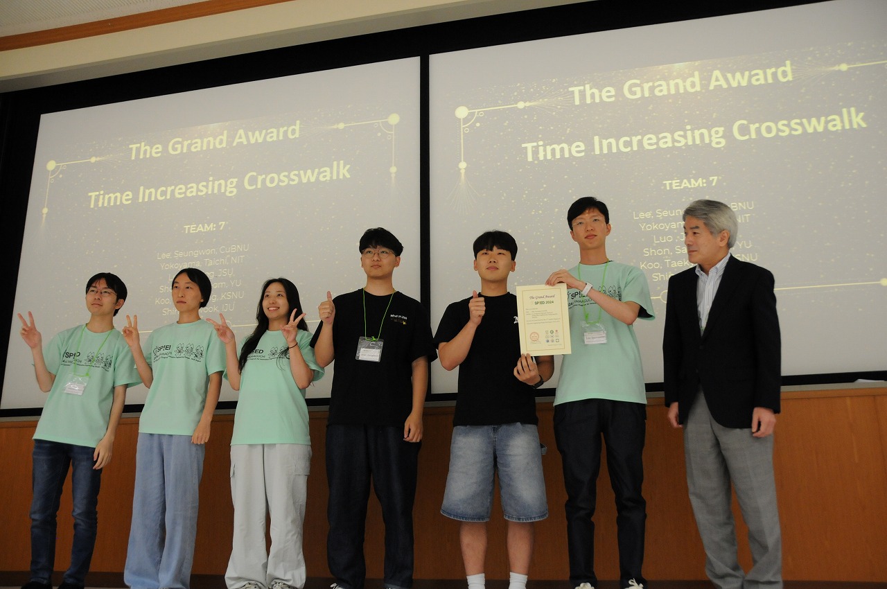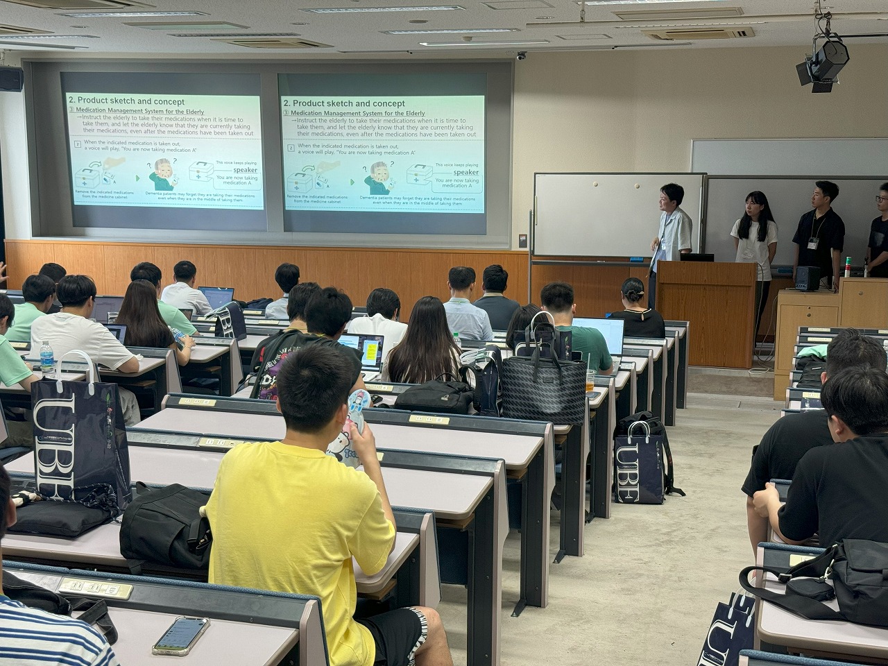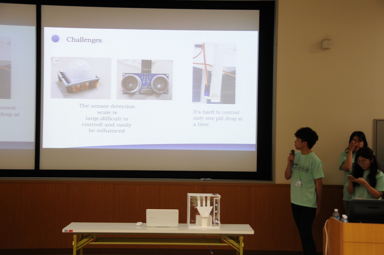 日本、中国、韓国の3か国から、合計10大学の学生111名と教員26名が参加しました。参加者の専攻分野は、機械、電気、情報系が中心ですが、芸術、数学、食品安全、化学、園芸科学、経済など、幅広い分野にわたっています。今年のテーマは「超高齢化社会に向けたスマートな解決策」(Smart Solutions for Super-Aging Society)で、学生たちはテーマに基づいて革新的なアイデアを考え、実際に試作品を制作することで、現実の課題に対する解決方法を模索しました。