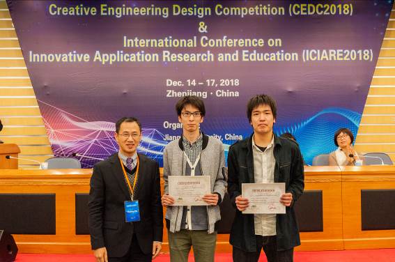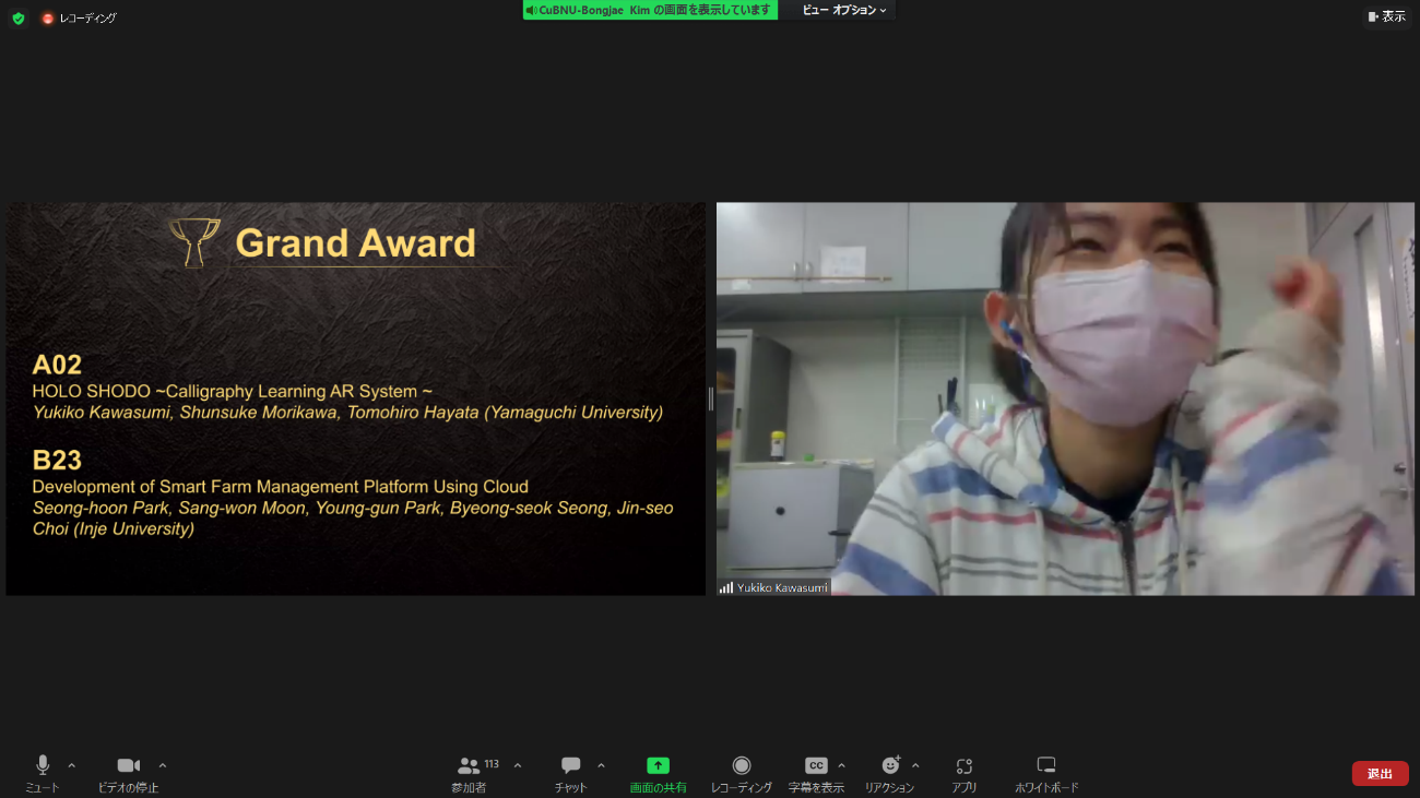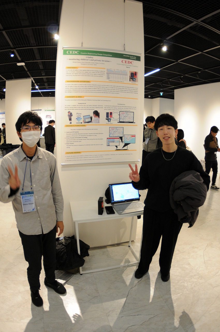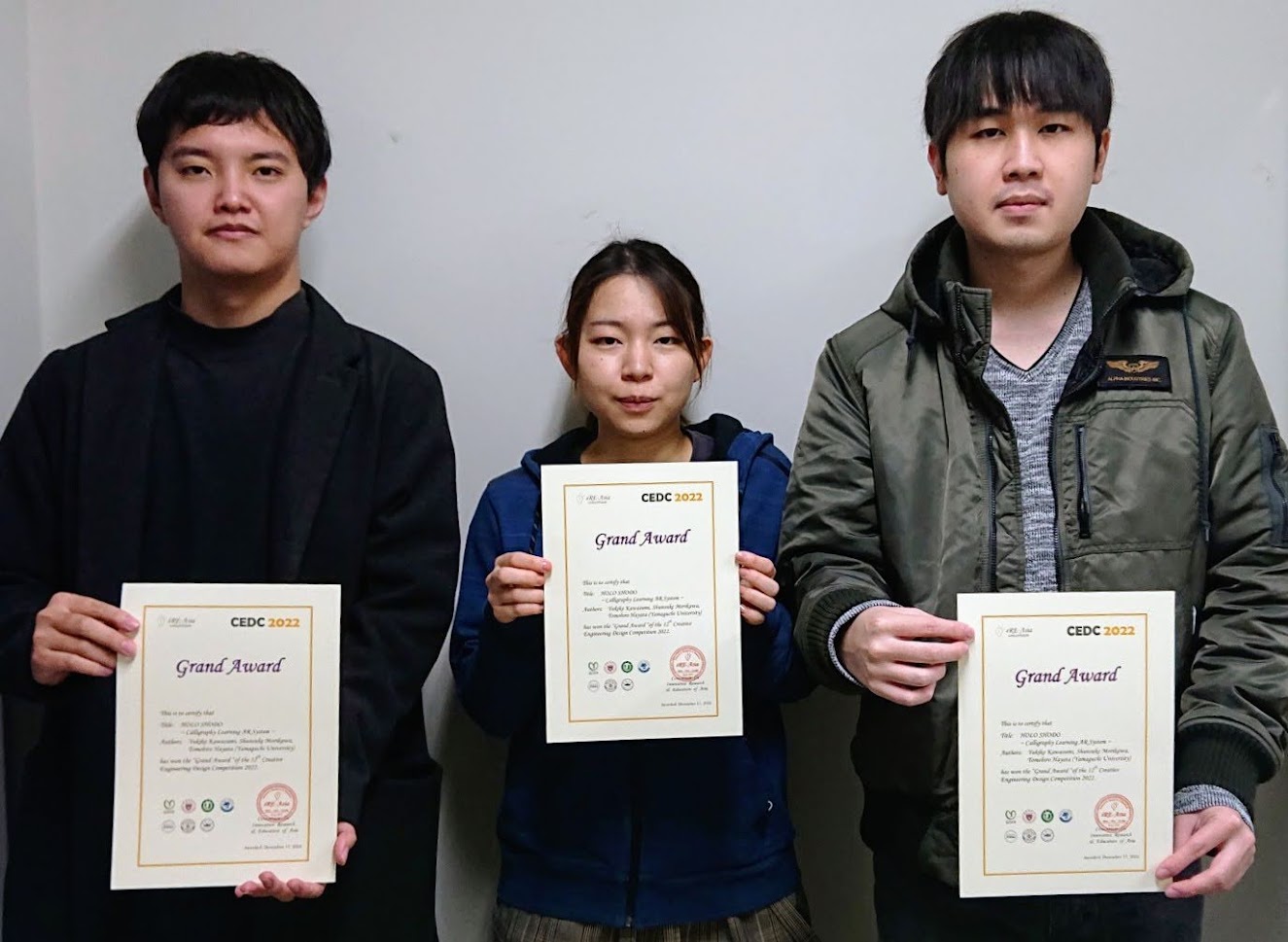 受賞者(左から早田 朋央さん、川角 祐貴子さん、森川 竣介さん) CEDC2022最優秀賞 受賞作品(https://youtu.be/Yt4yXeU9Qx8)