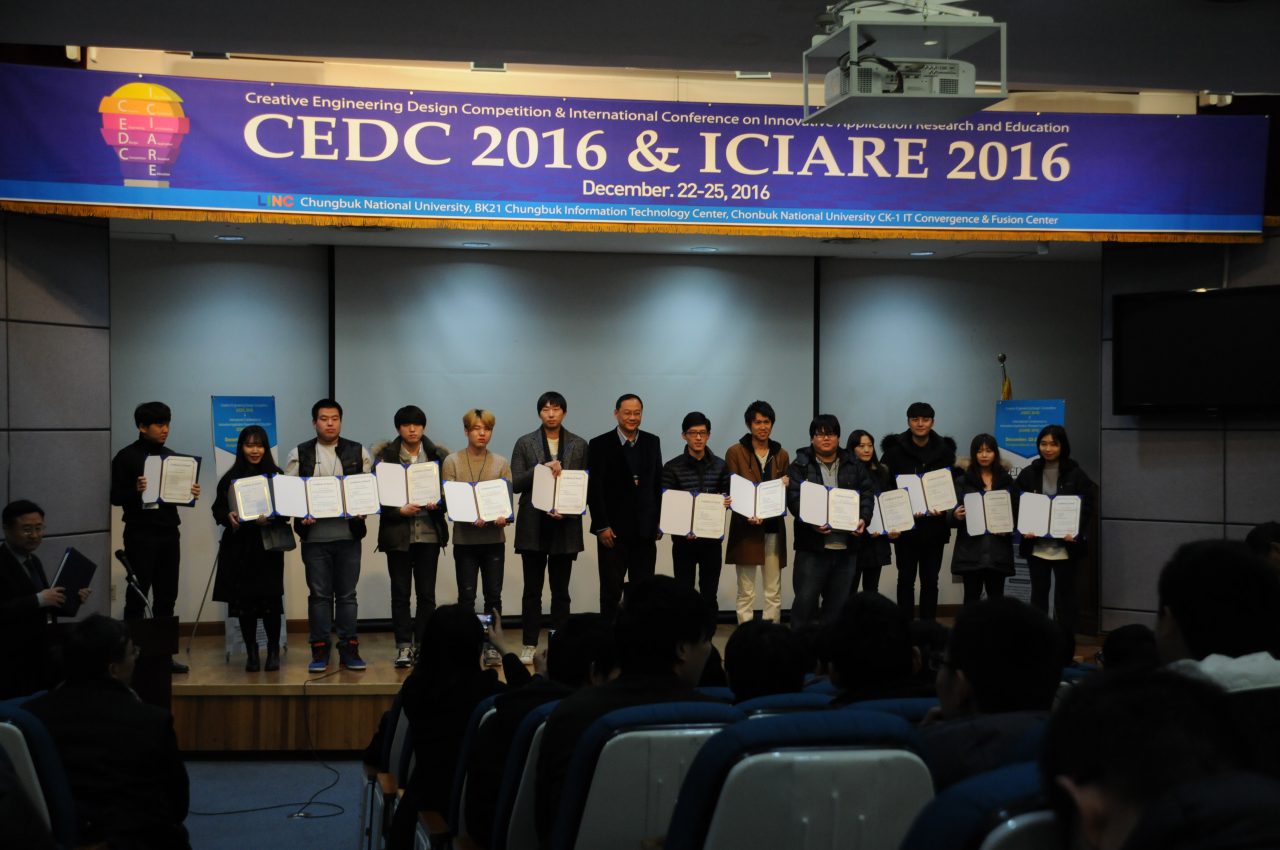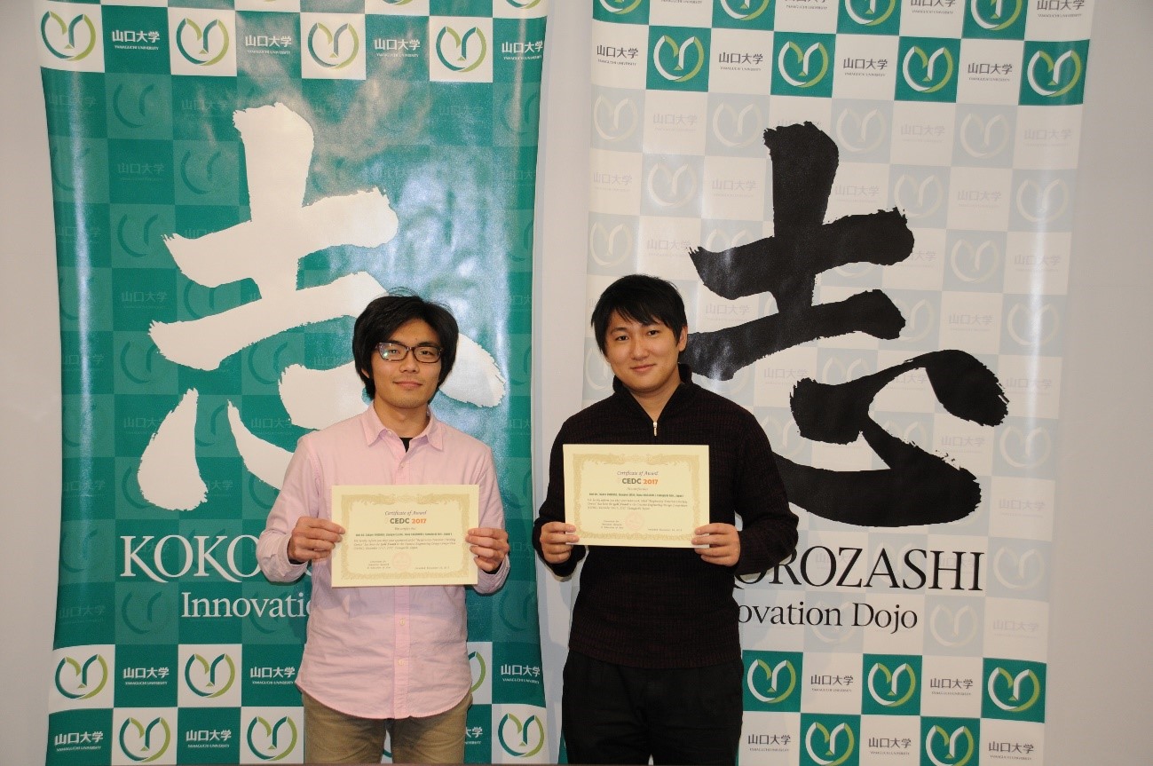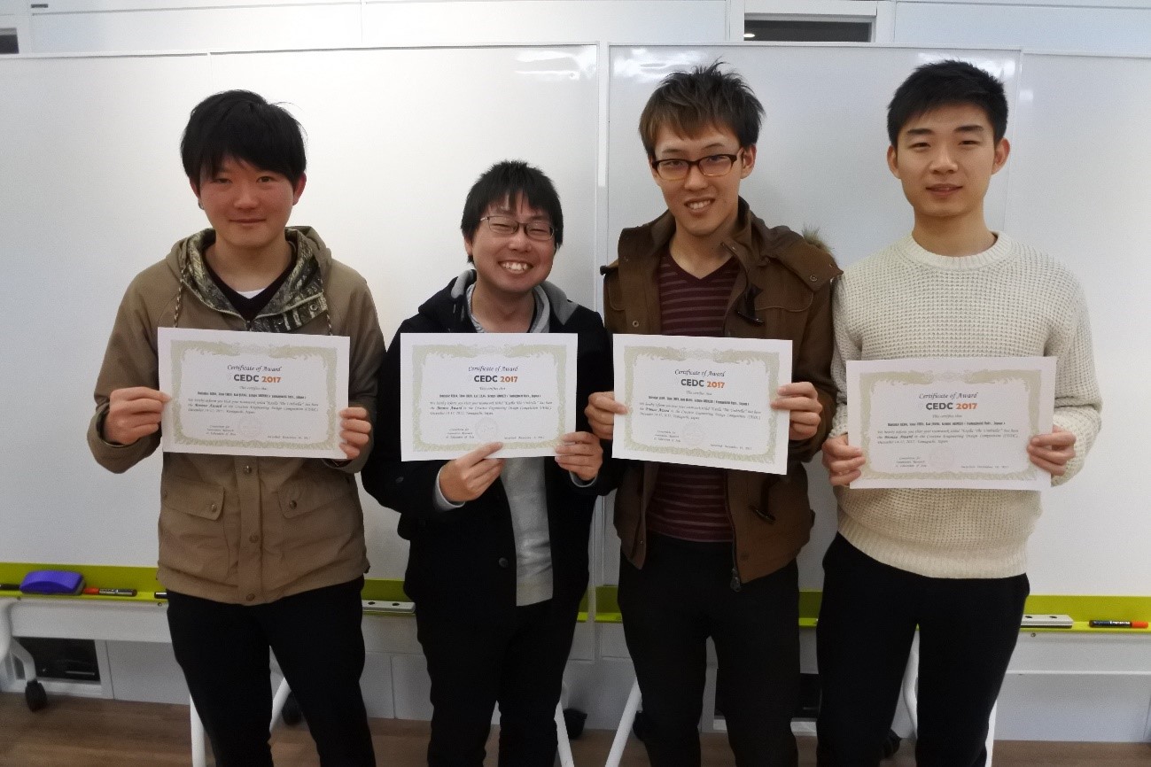 受賞者(左から早田 朋央さん、川角 祐貴子さん、森川 竣介さん) CEDC2022最優秀賞 受賞作品(https://youtu.be/Yt4yXeU9Qx8)