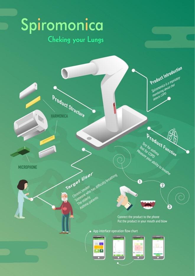 - 肺炎は高齢化に伴い増加傾向にある重大な病気です.にもかかわらず肺炎の予兆は素人では診断が難しい課題があります.本装置は簡単な方法で呼吸音を評価することで肺炎の予防を促します.また,トレーニングと併用することで,肺活量などが向上しているか調べることもできトレーニングのモチベーションアップに繋がります.