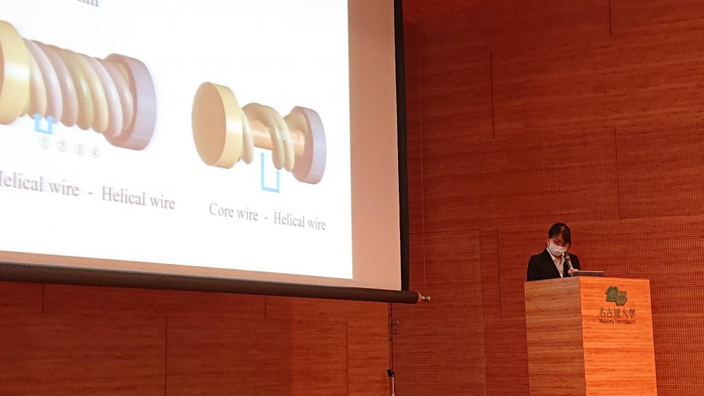 発表内容は「より線ワイヤへの超音波伝搬による発熱現象のシミュレーション」に関する研究で,