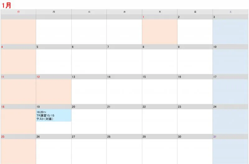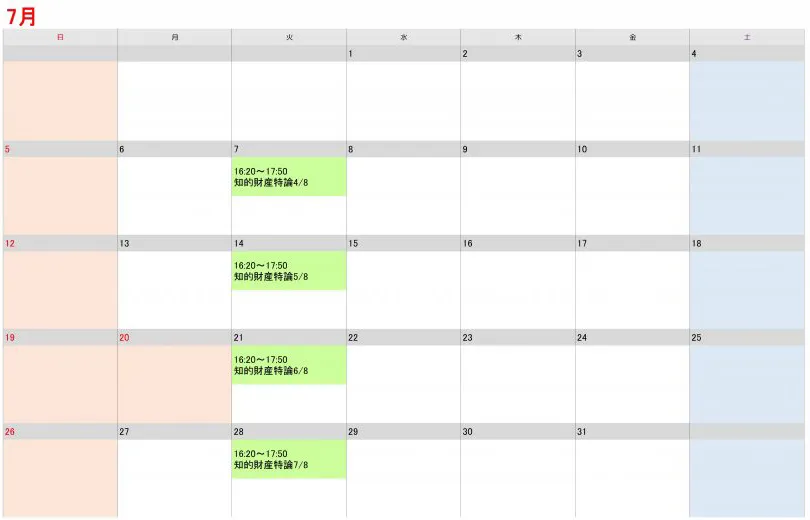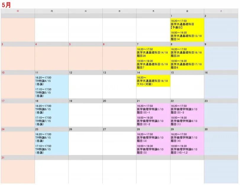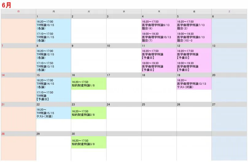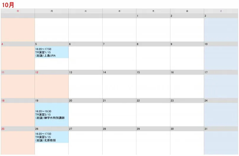 授業時間割カレンダー
