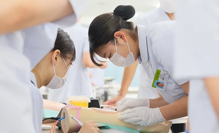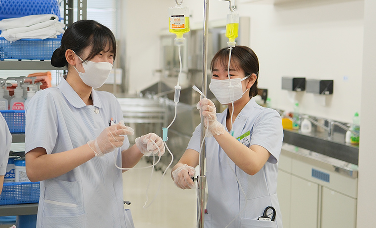 敷地内にはドクターヘリを有する附属病院があり、専門性の高い教員や医療スタッフとともに高度先端医療と急性期看護を学べるカリキュラムが充実しています。また、大学院医学系研究科保健学専攻を持ち、教育研究者の道を目指したり、専門看護師の資格を取得したり、看護実践教育センターで卒後の学びを続ける環境も整っています。学生1人ひとりの「なりたい将来」や「好き」を大切にしながら、キャリアをサポートしています。