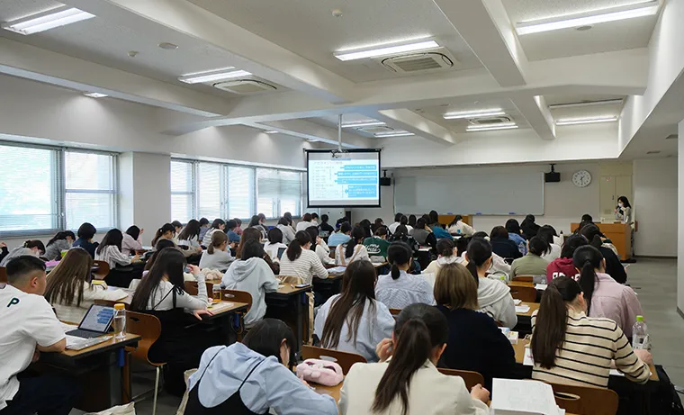 ライフサイクルや生活場所に対応した、それぞれの看護学の専門分野や在宅看護学、公衆衛生看護学に加え、救急看護学、高度先進医療看護学、遺伝看護学、国際看護学など、1年生から次代に先駆けたカリキュラムを準備しています。