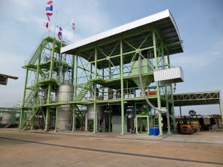 タイの高温発酵試験パイロットプラント      耐熱性酵母の高温発酵能...発酵が進むと風船が膨らみます。