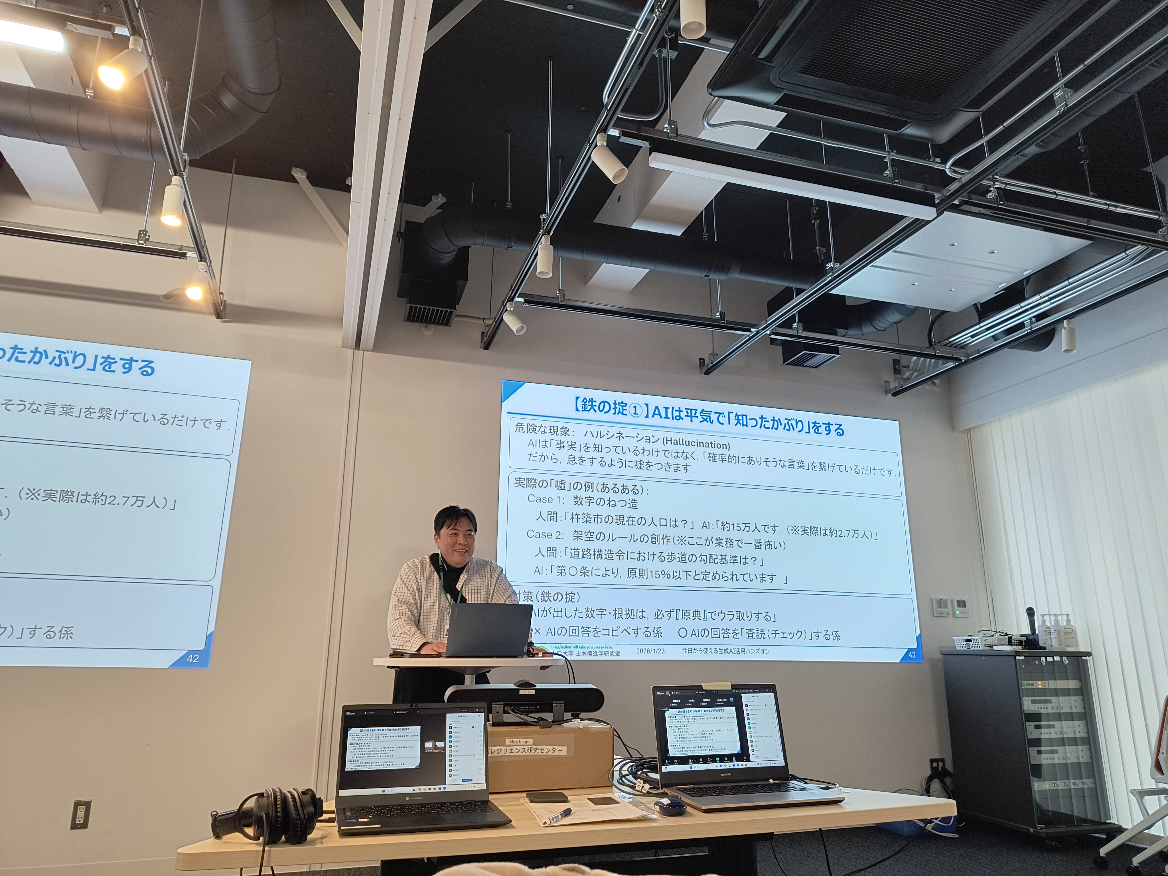 令年8年1月23日(金)に、第27回地域レジリエンス研究会定期講演会「今日から使える生成AI活用ハンズオン~あなたの仕事を助ける「専属アシスタント」の導入~」がハイブリッド形式で開催され、会員のみ会場7名、WEB約20名が参加しました。
