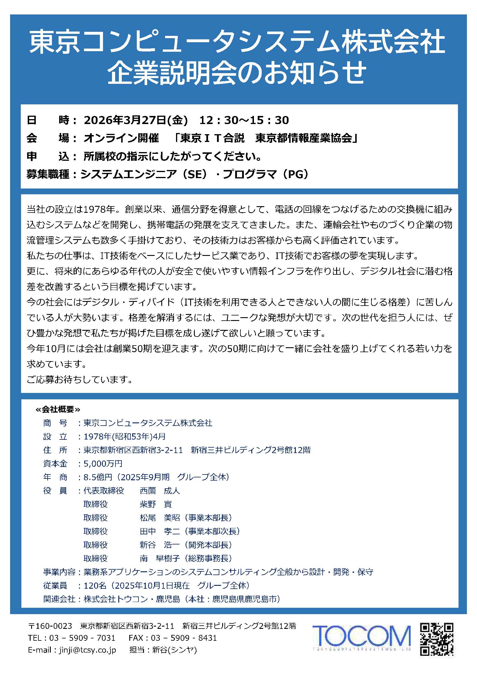 ■ 東京IT合説 3月27日(金) 12:30-15:30 オンライン