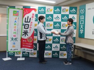 JA山口県から本学学生へ山口県産米が贈呈されました