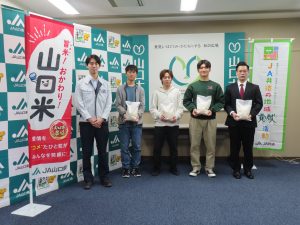 2025(令和7)年12月19日(金)、共通教育棟2階会議室において、JA山口県から本学学生への「山口米贈呈式」が執り行われました。