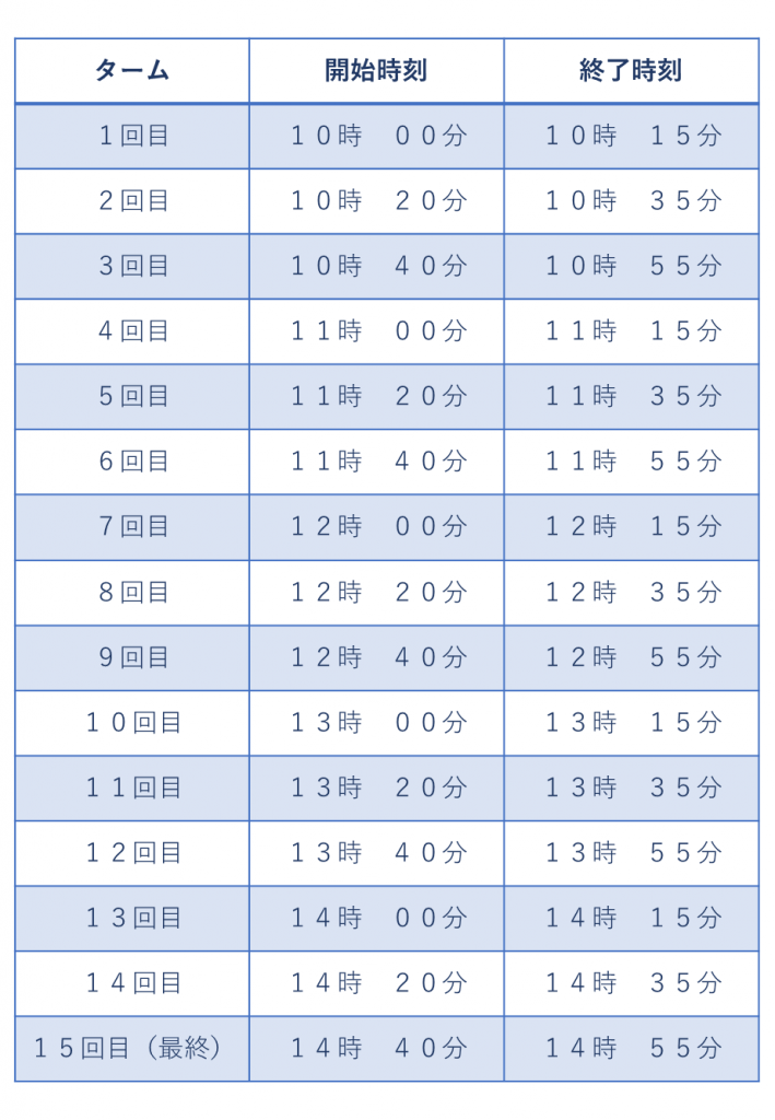 - 各ブースでの説明は1回約20分、各回8席の入替制とします。