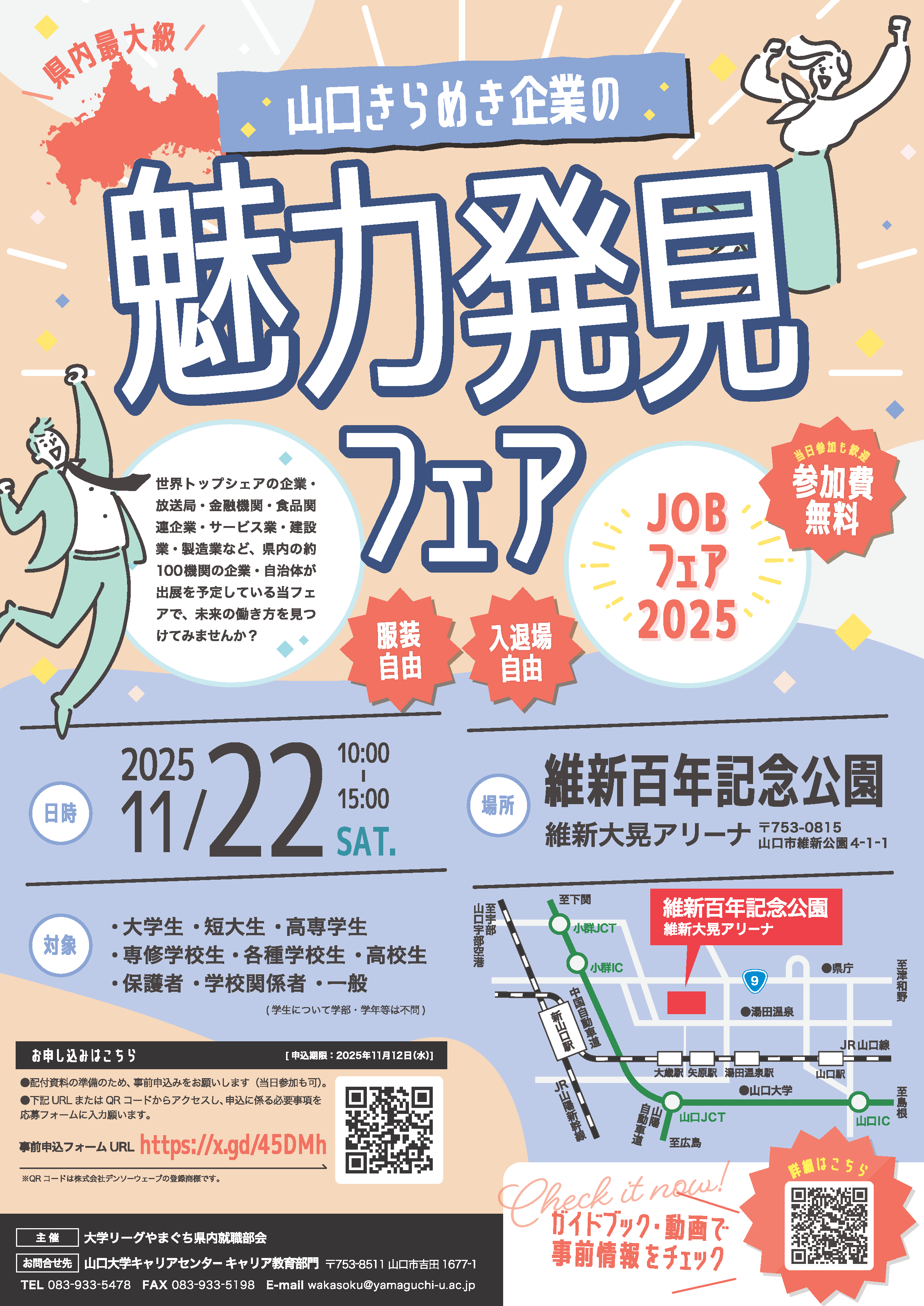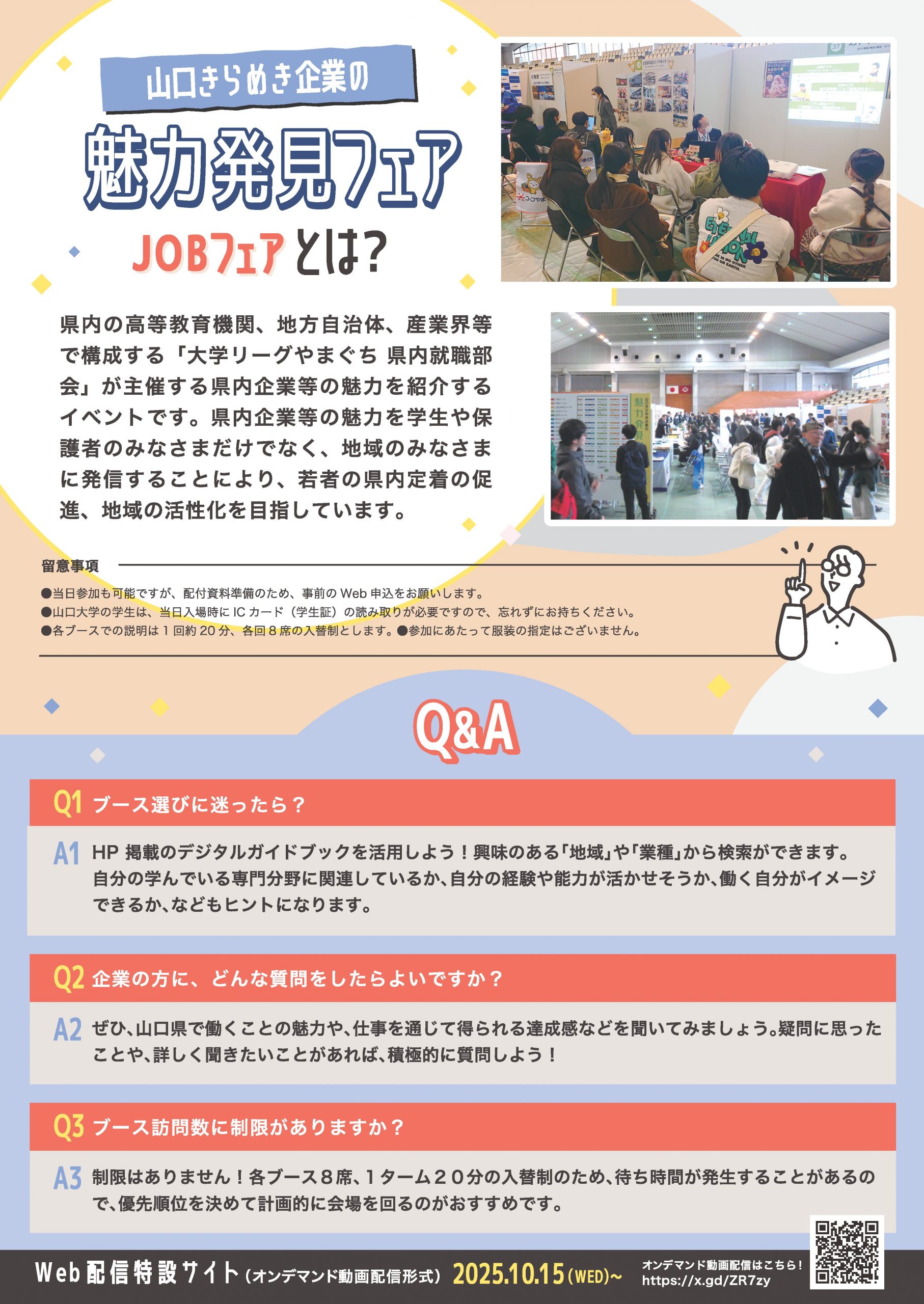 山口きらめき企業の魅力発見フェア(Jobフェア)2025 (チラシ 表・裏)