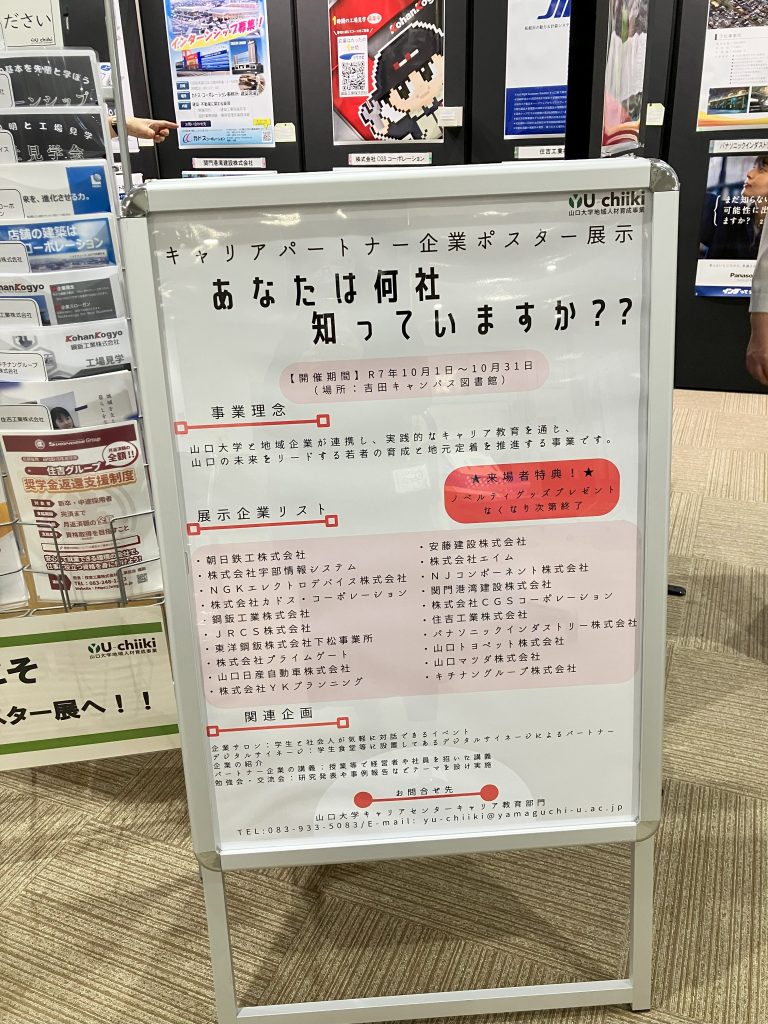 【開催中】山口県内企業を「知る」1ヶ月間!キャリアパートナー企業 ポスター展示(10月/吉田キャンパス)