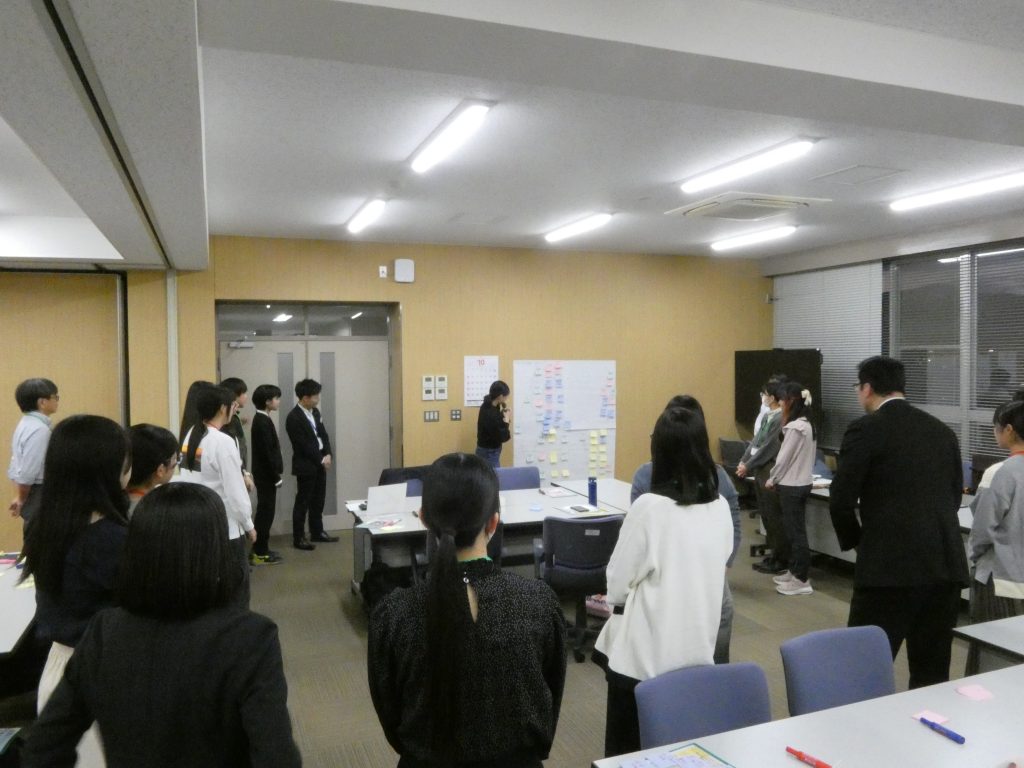 今回は【ロジカルシンキング(論理思考)を体験しよう】をメインテーマに、人文学部、理学部、農学部、共同獣医学部、国際総合科学部、ひと・まち未来共創学環の学生10名と、キャリアパートナー企業4社の社員6名、そして山口大学の教職員5名にご参加いただきました。