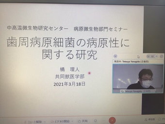 本セミナーでは、招待講演として愛媛大学プロテオサイエンスセンターの坪井敬史先生にオンラインご講演いただくとともに、病原微生物部門の各研究室から最新の研究成果発表を行いました。