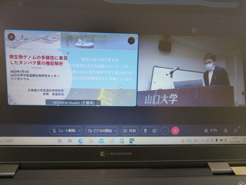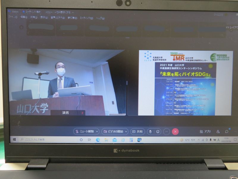 2022年3月4日に「未来を拓くバイオSDGs」と題して,中高温微生物研究センターシンポジウムを開催しました。本シンポジウムはコロナウイスルの感染拡大を防ぐ観点から,対面とオンラインのハイブリッド形式で,また,対面の会場では十分に間隔をとり換気状況にも気を配りながら開催しました。