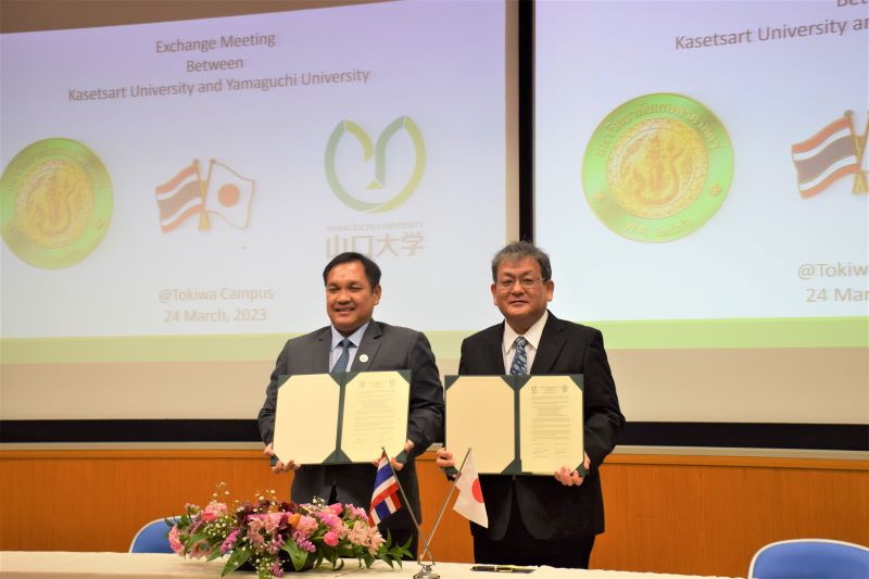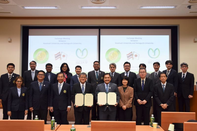 令和5年3月24日(金)、タイのカセサート大学の学長(Chongrak Wachrinrat先生)と副学長や工学部長ら訪問団(総勢11名)が山口大学工学部を訪問され、大学間交流協定などの調印式が行われました。