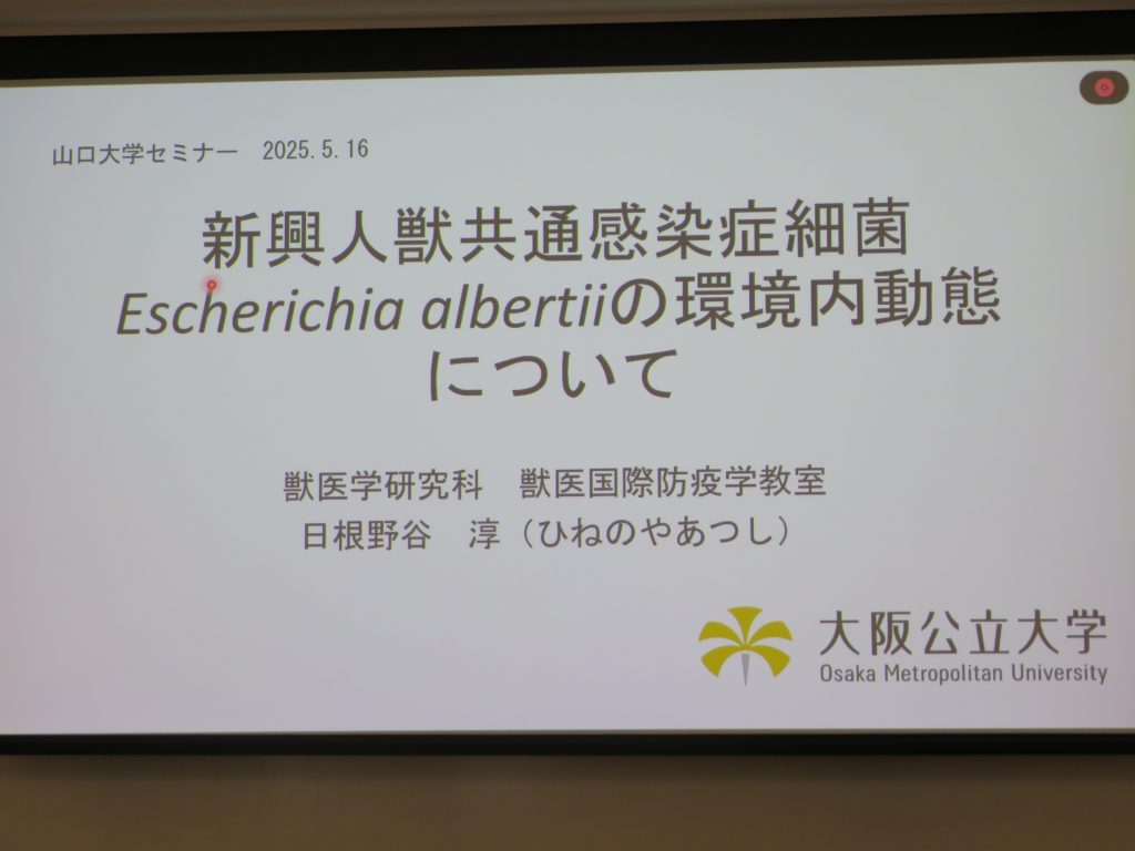 2025年5月16日(金)に、山口大学共同獣医学研究科・獣医学研究棟4階大講義室にて、中高温微生物研究センター特別セミナー(共催:共同獣医学部、One Welfare国際研究センター)が開催されました。