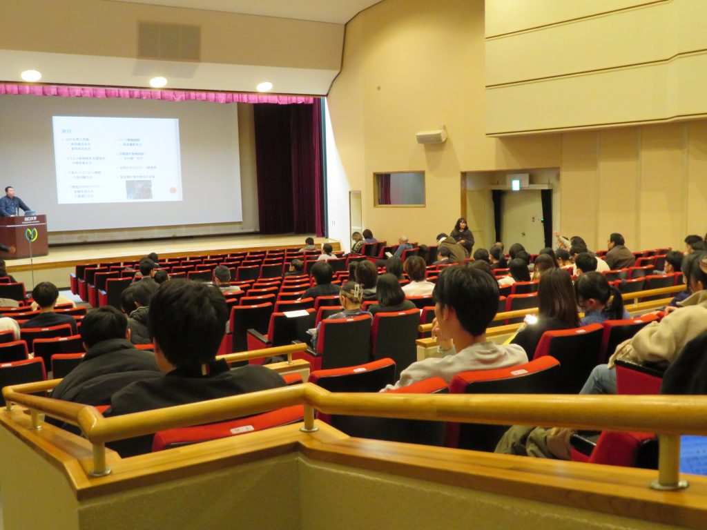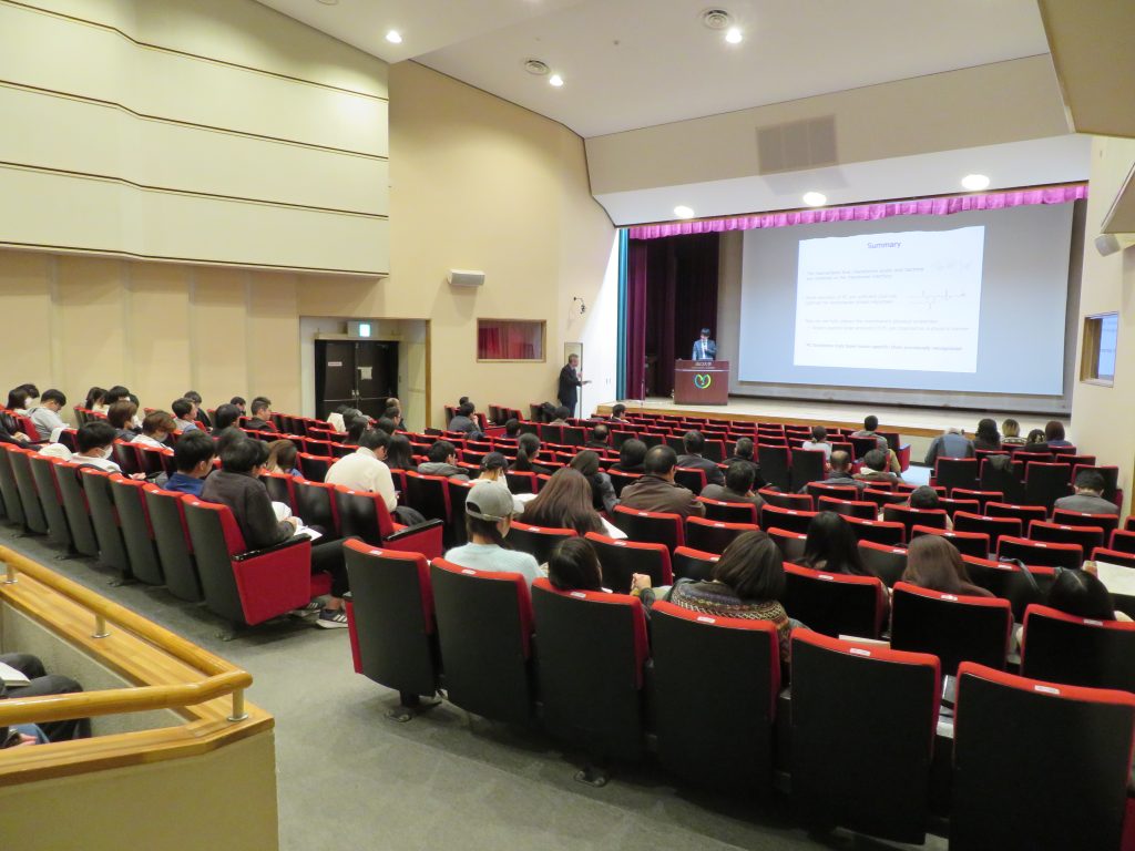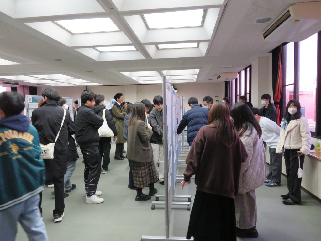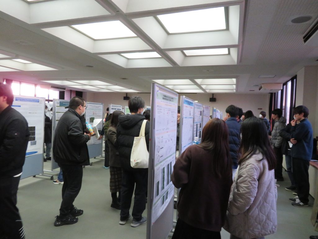 また、第2部では学生を主体とする52演題のポスター発表があり、共同研究で来学された7名の先生方も含めた参加者の熱のこもった討論が行われました。引き続き、場所を学生食堂きららに移し、情報交換会が開催されました。こちらには一般27名、学生80名の参加があり、互いの研究や研究室の紹介を行うなど活発な交流がみられました。